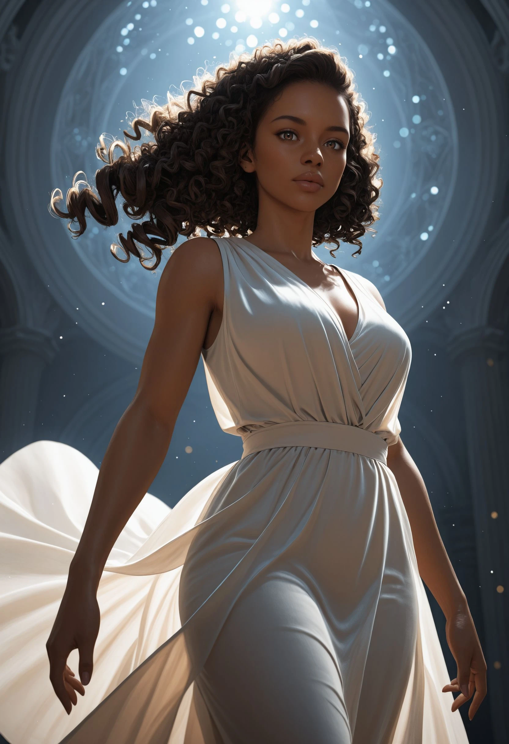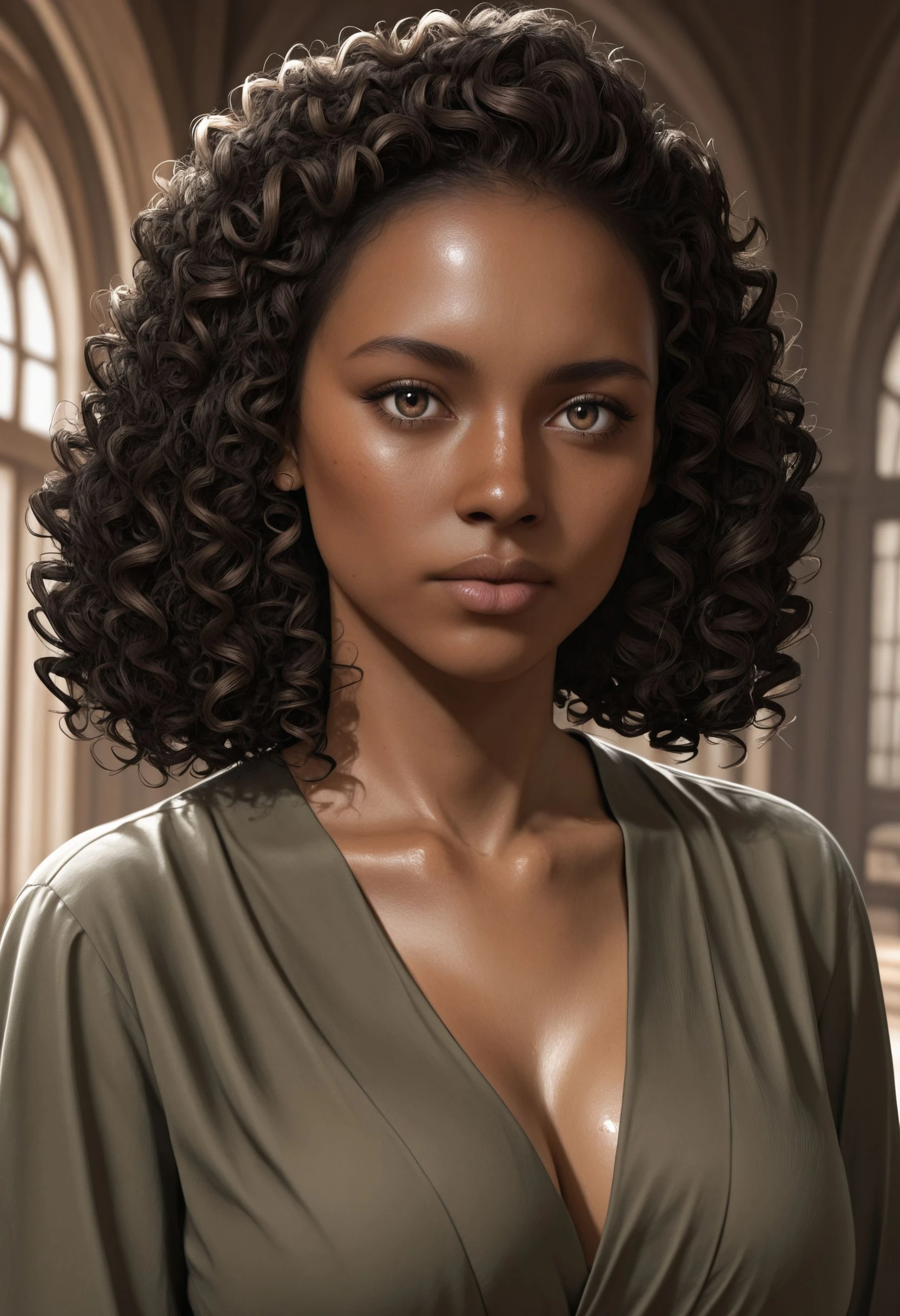 U4Nadine, 1girl, curly hair, brown hair, brown eyes, dark-skinned female
