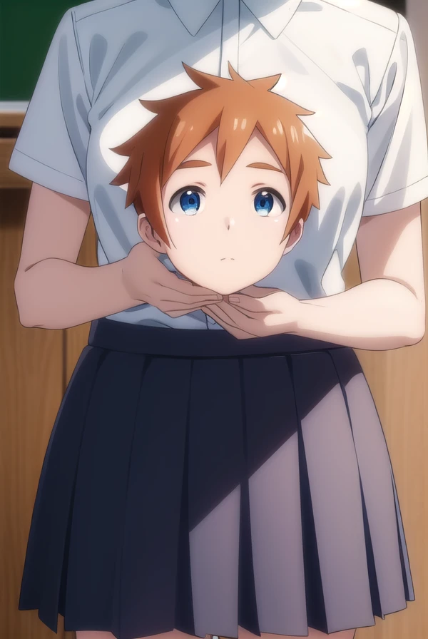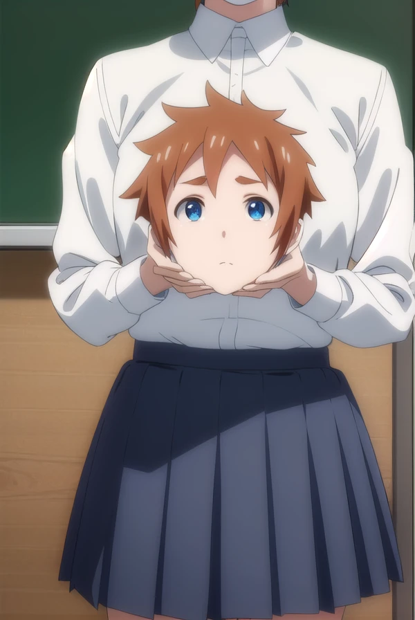 skirt, shirt, school uniform, white shirt, pleated skirt, brown skirt,