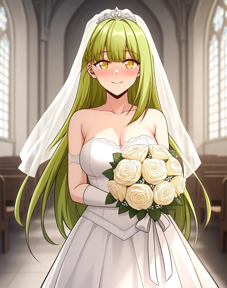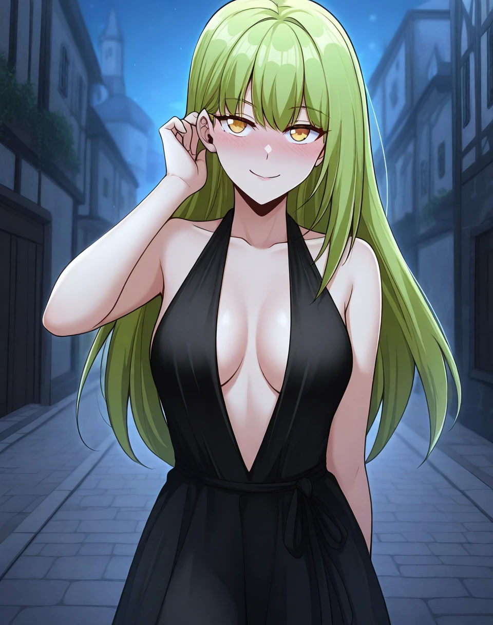 sylviertw, green hair, long hair, yellow eyes, 1girl,