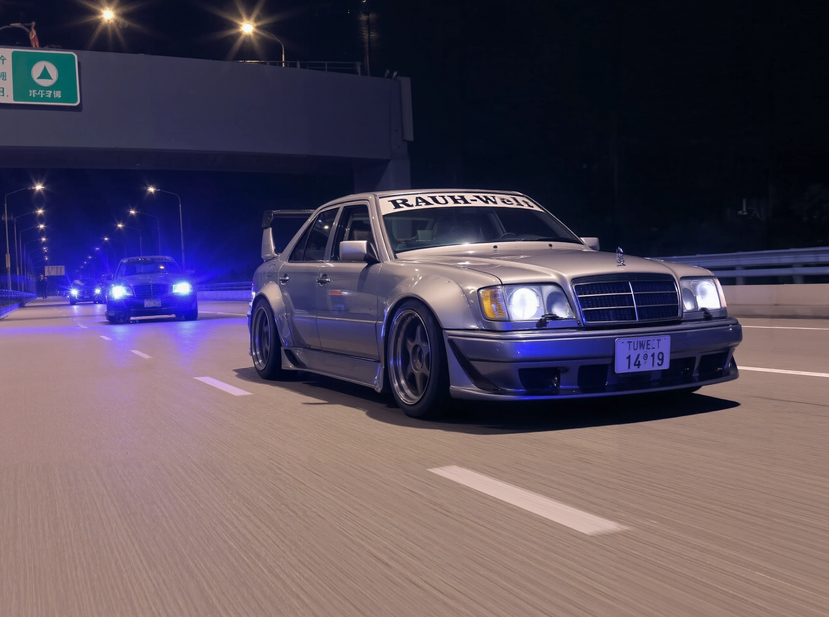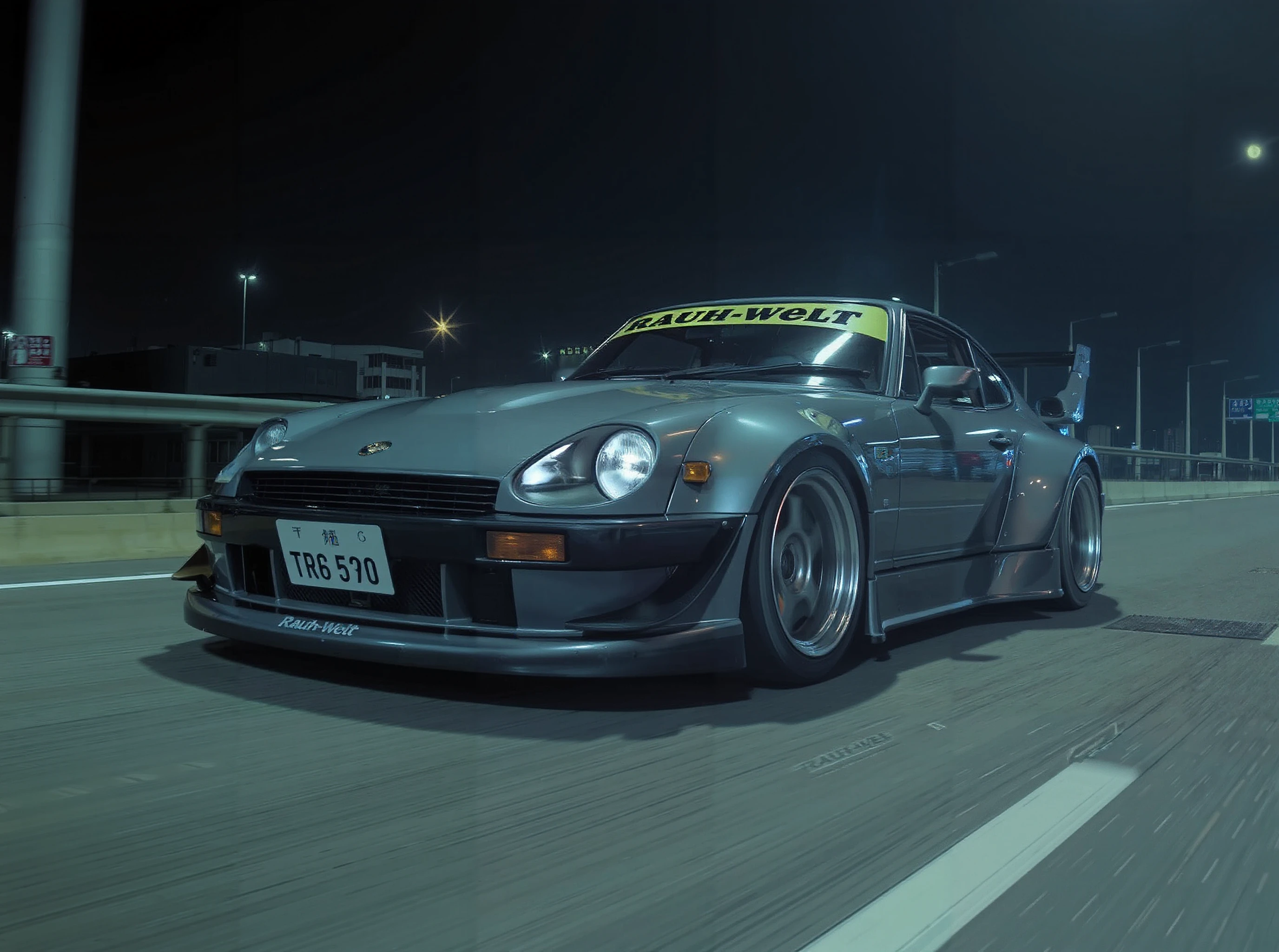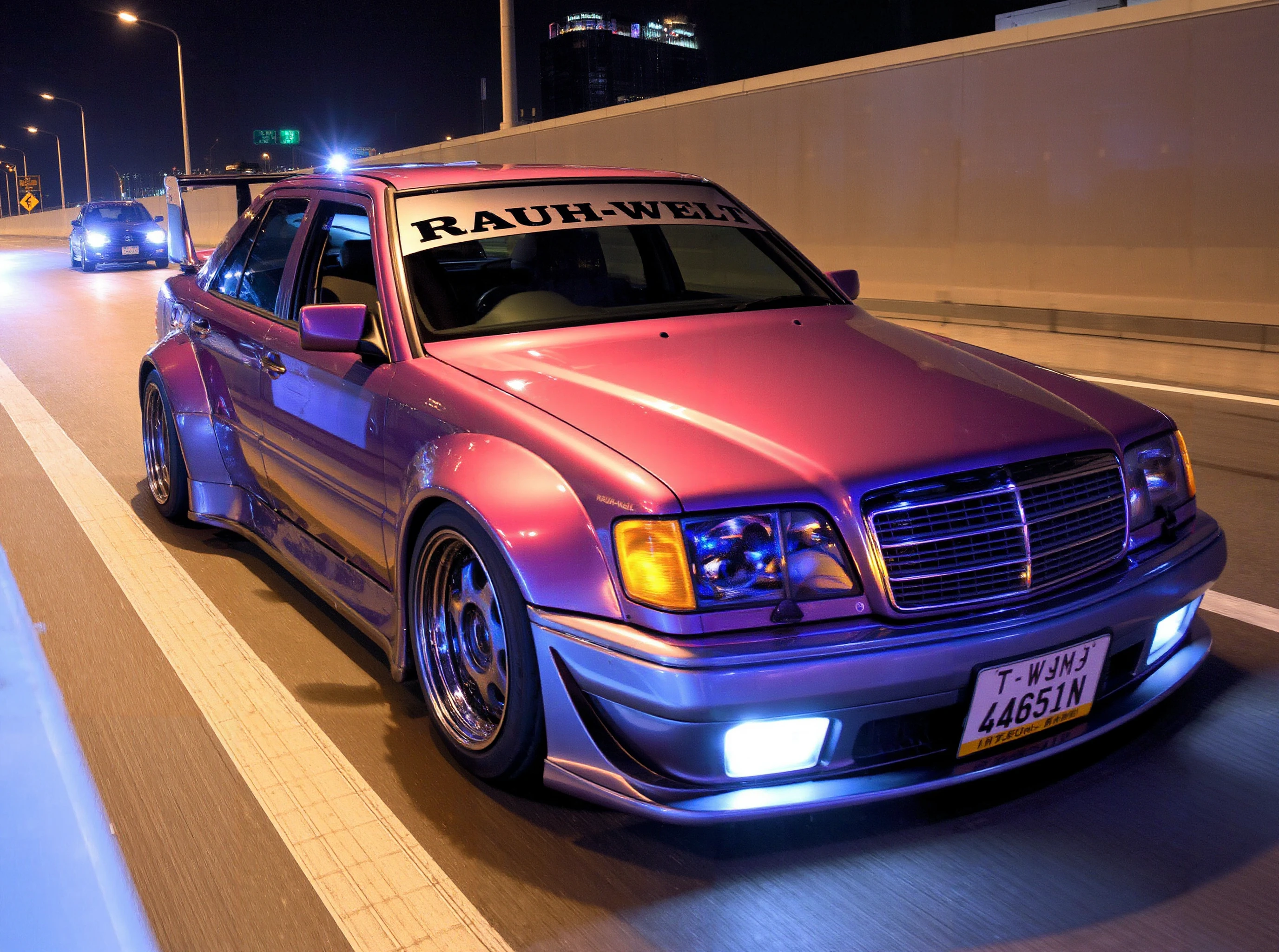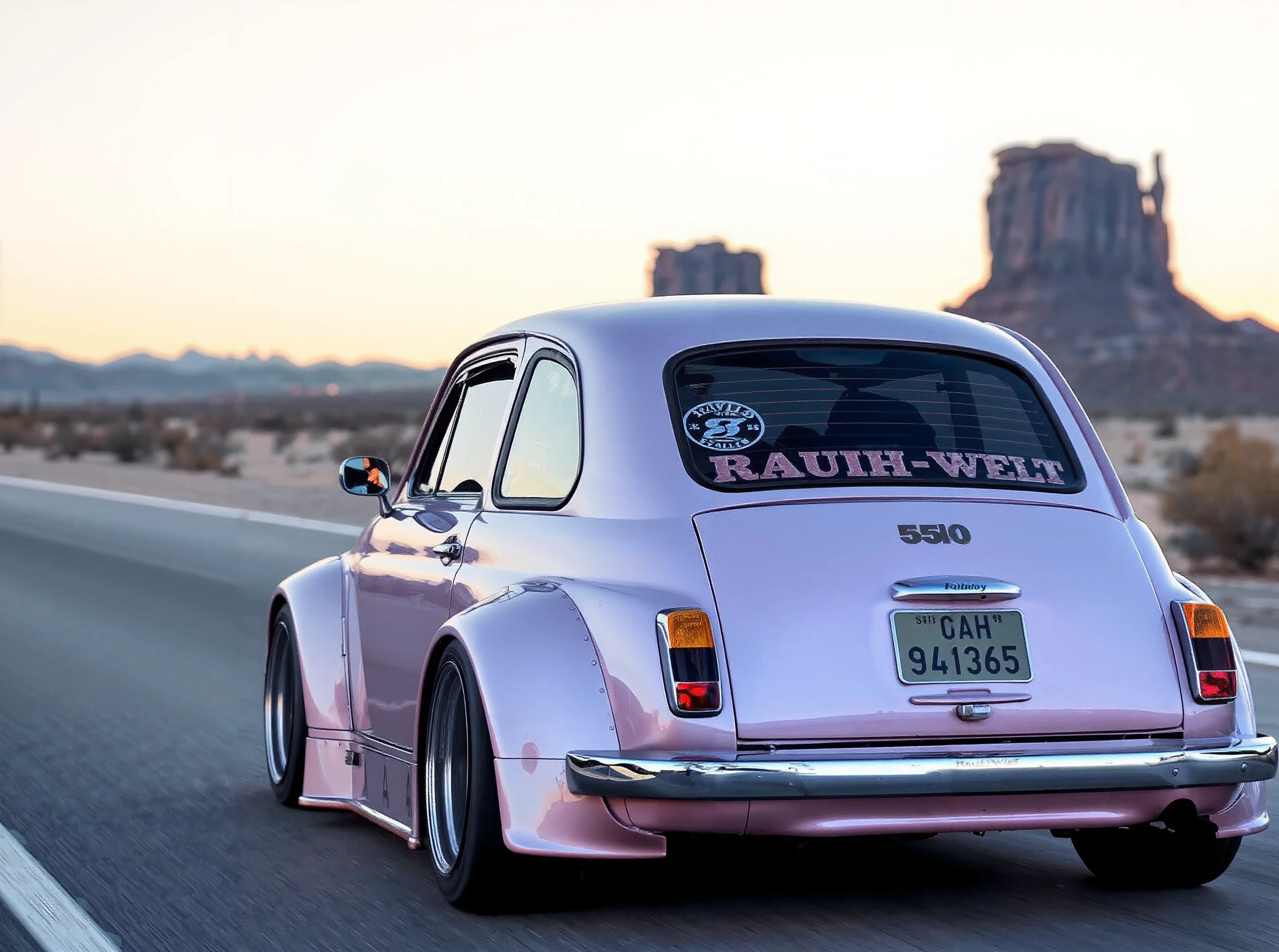 Just use "rauh-welt" in the prompt, you can also add stuff like "with a widebody kit, wide fenders" and "sticker on top of the windshield with writing "RAUH-WELT" " if needed.