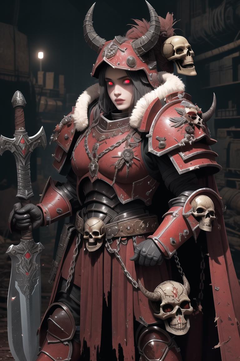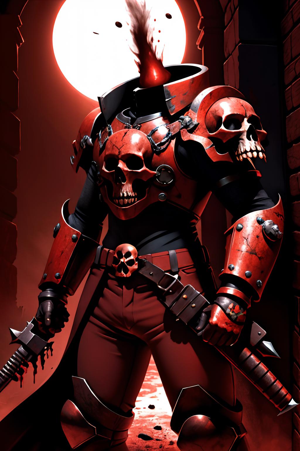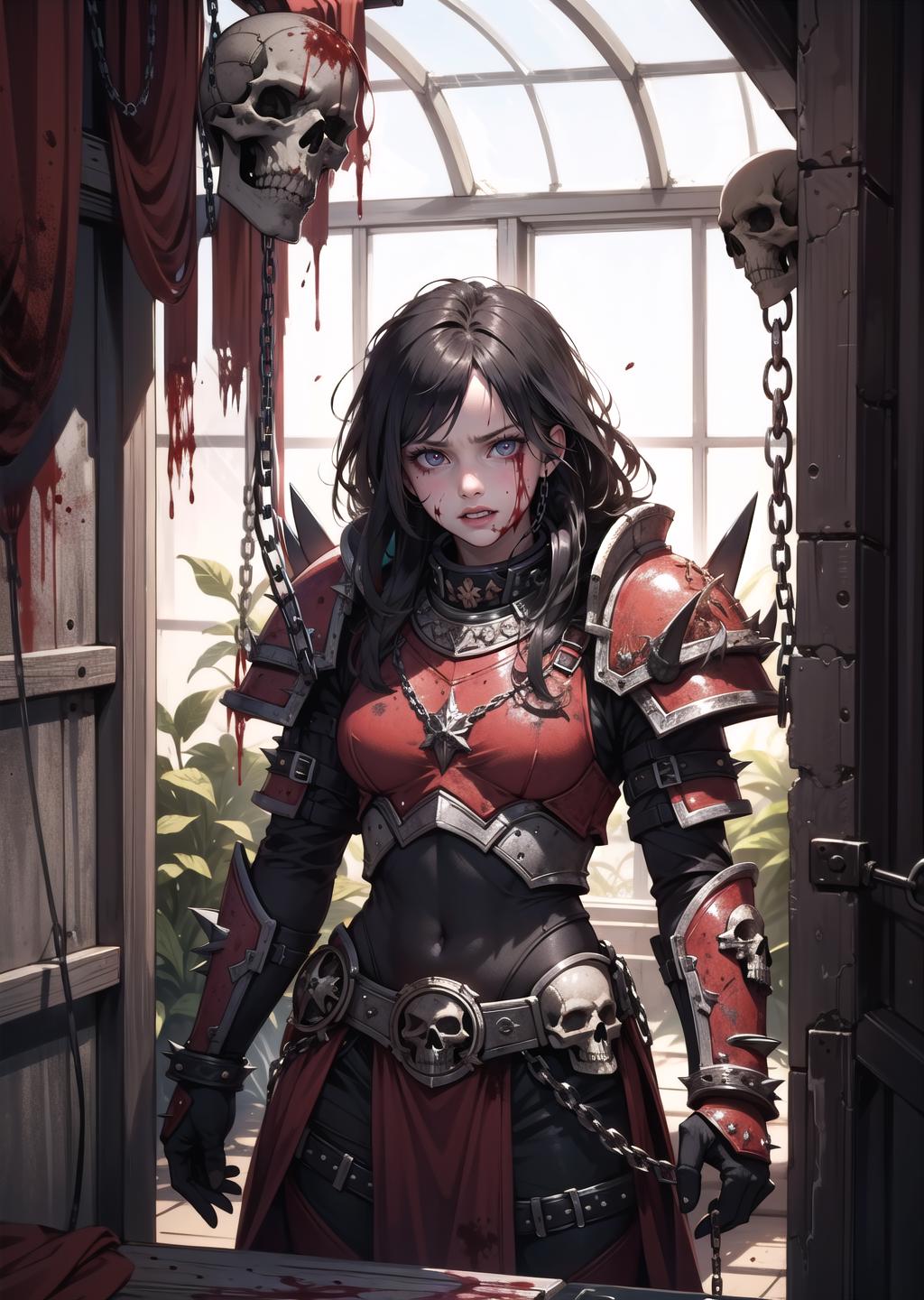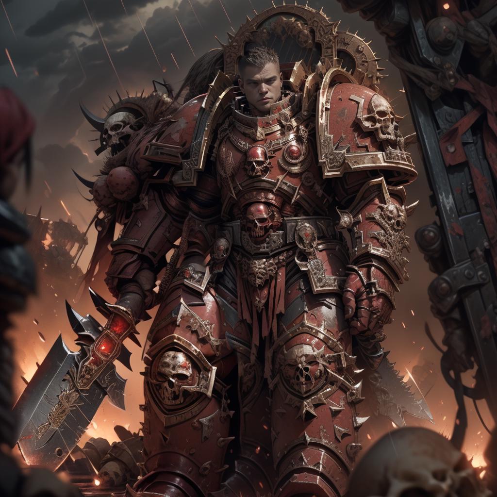 Main Activator: khornehelpers: armor, skulladditional: blood on face, blood on clothes, spiked armor, chain