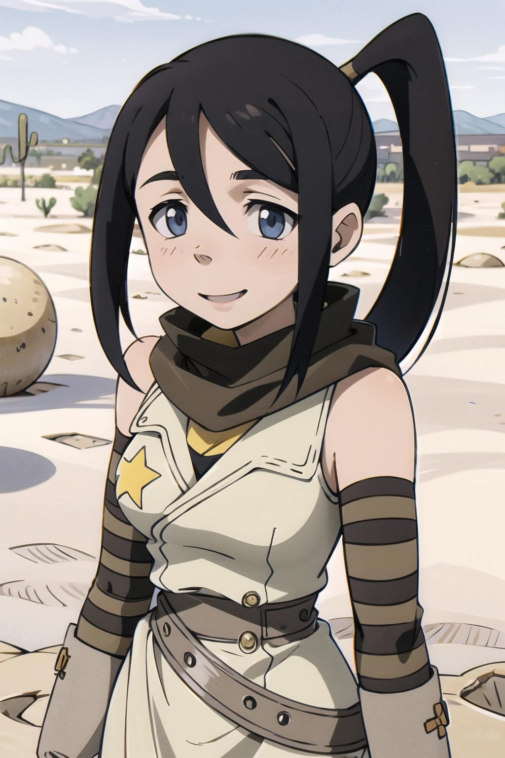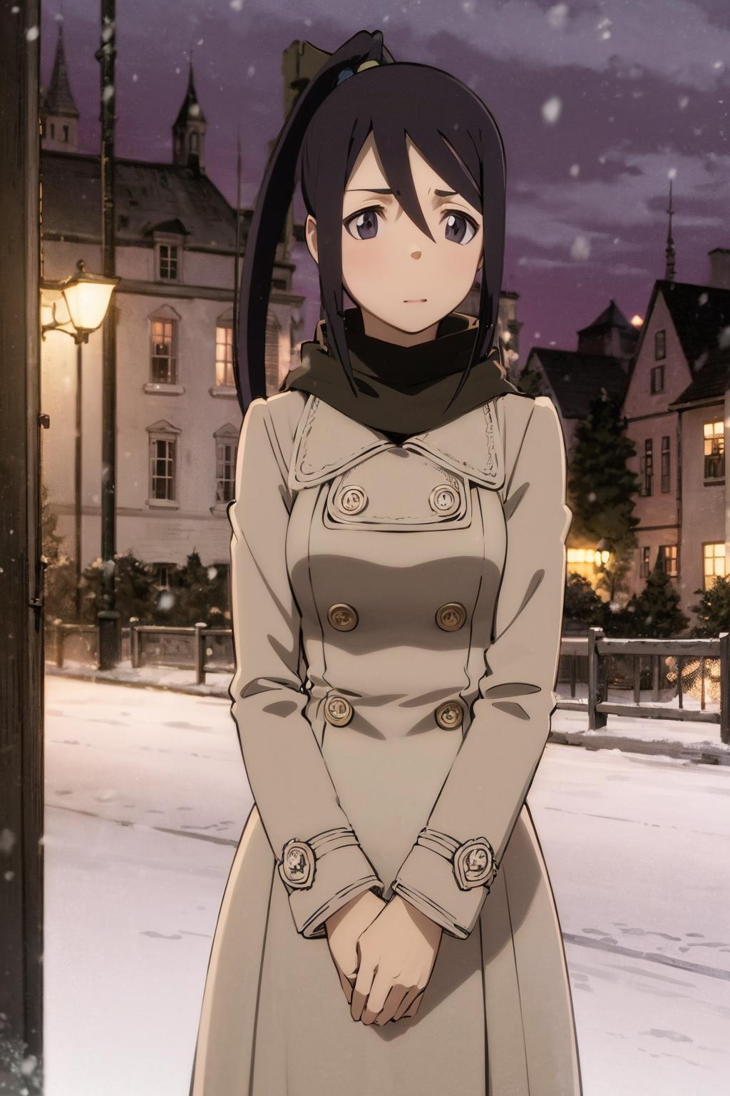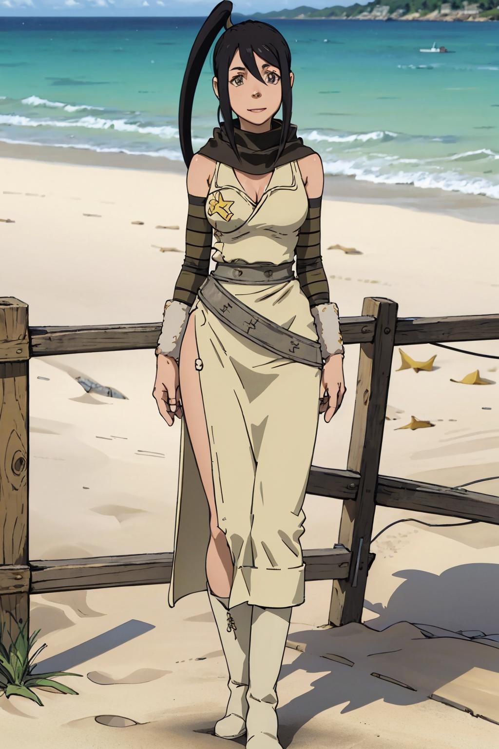 tsubaki, ponytails, scarf, detached sleeves, dress, single thighhigh, white boots