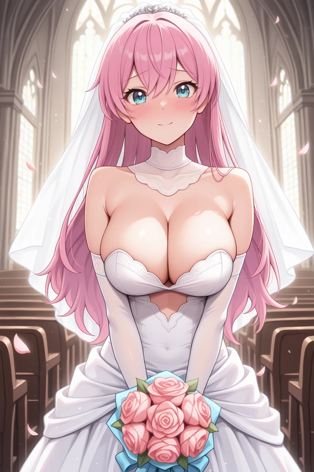 wtnb, large breasts, blue eyes, pink hair, hair between eyes, long hair