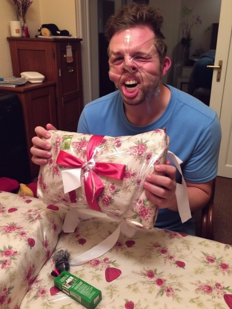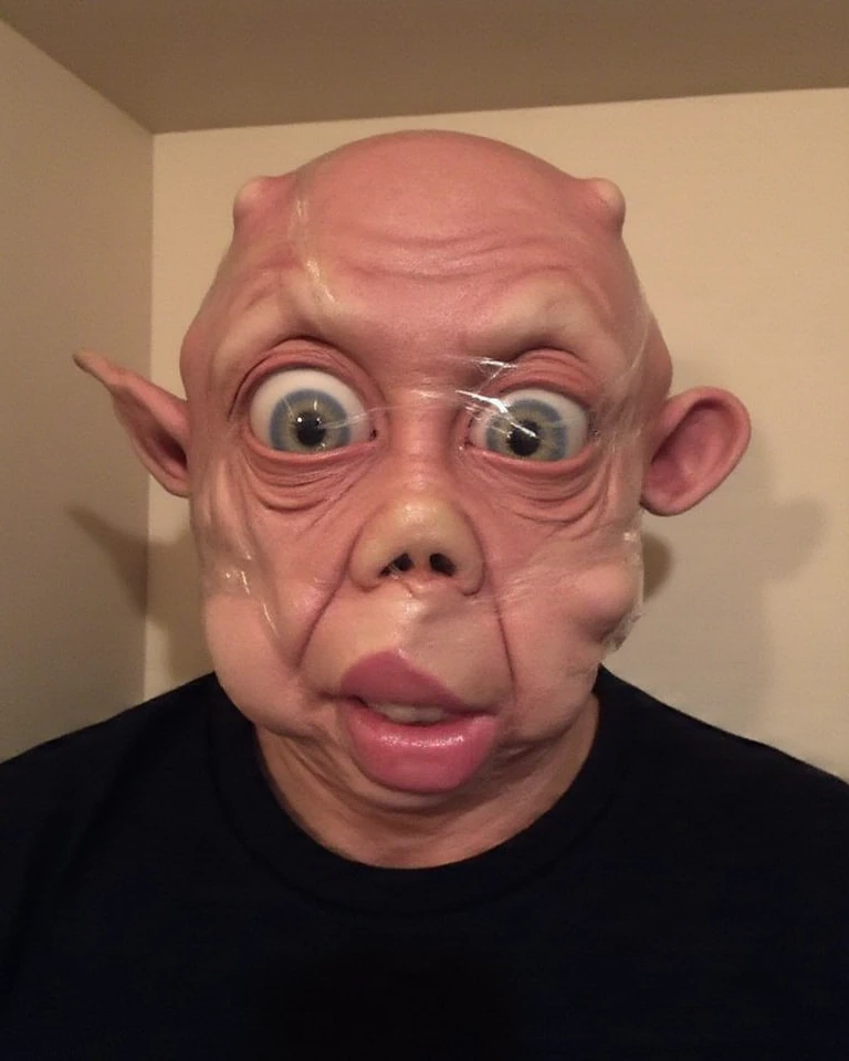 closeup photograph, selfie, showing teeth, deformed face, squinting eyes,