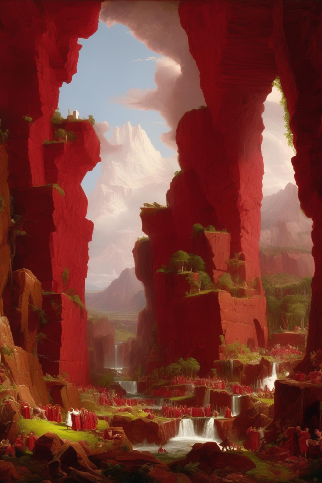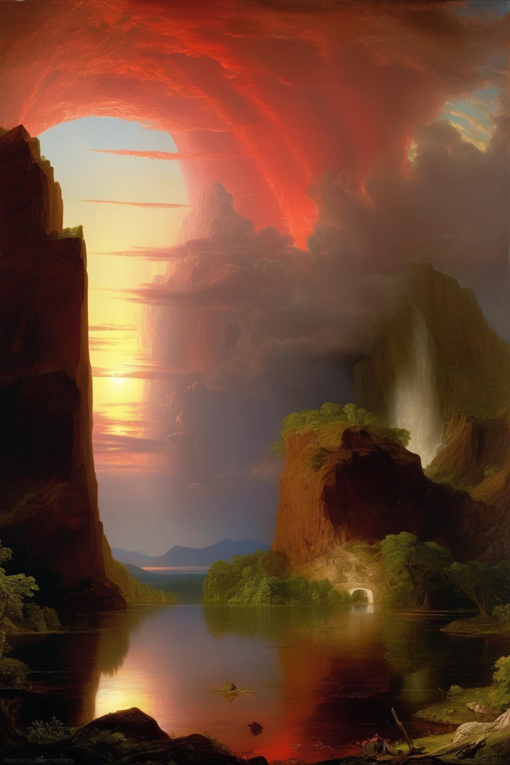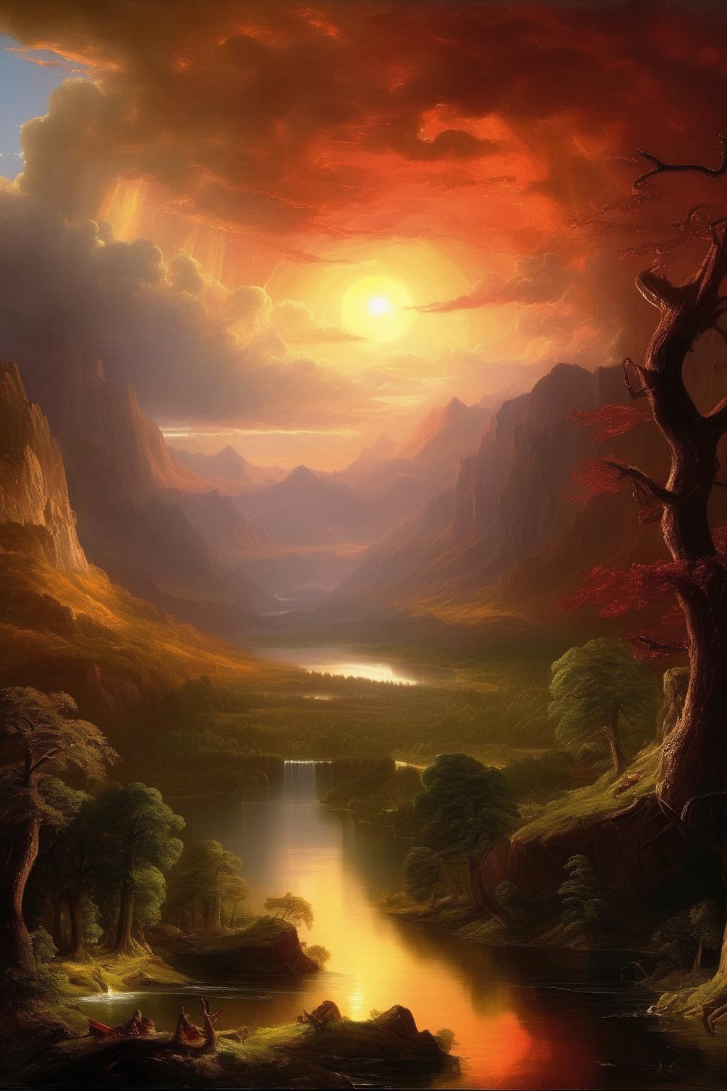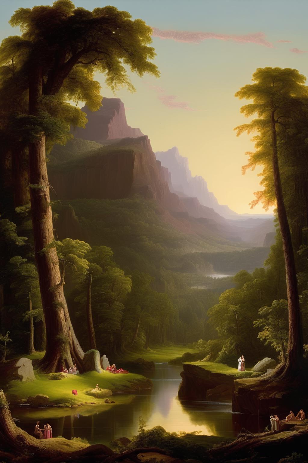 One of Cole's notable contributions was his ability to infuse his landscapes with a sense of narrative and symbolism. His paintings often told stories or conveyed allegorical messages, exploring themes such as the cycle of life, the fragility of civilization, and the harmony between humanity and the natural world.