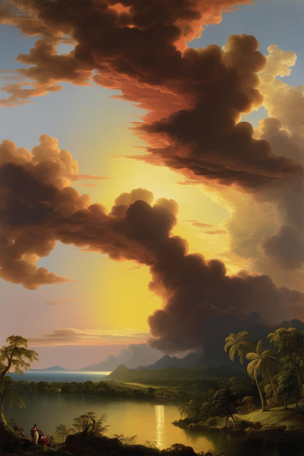 Cole's style was characterized by his meticulous attention to detail, rich color palette, and skillful rendering of light and atmosphere. He often employed dramatic lighting effects and carefully composed scenes to create a sense of drama and awe in his landscapes.