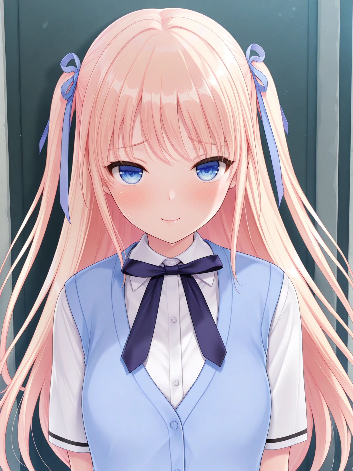 sakura rein, hair ribbon, blue eyes,