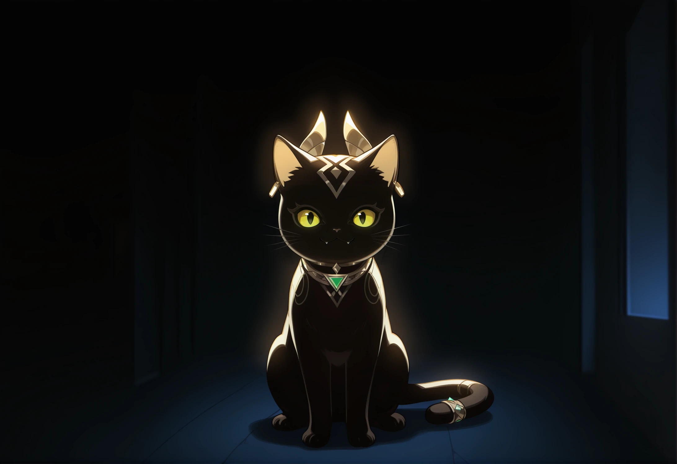 ashru (genshin impact), cat, jewelry, earrings, black cat, crown, tail, animal
