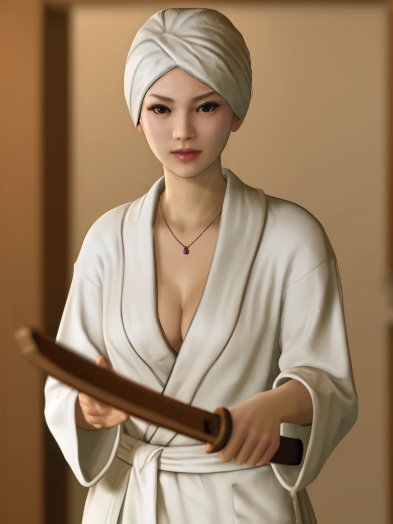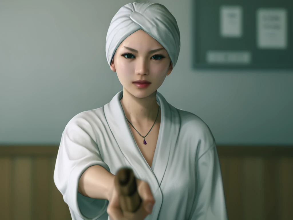 Sayama Kaoru, Towel, holding gun,