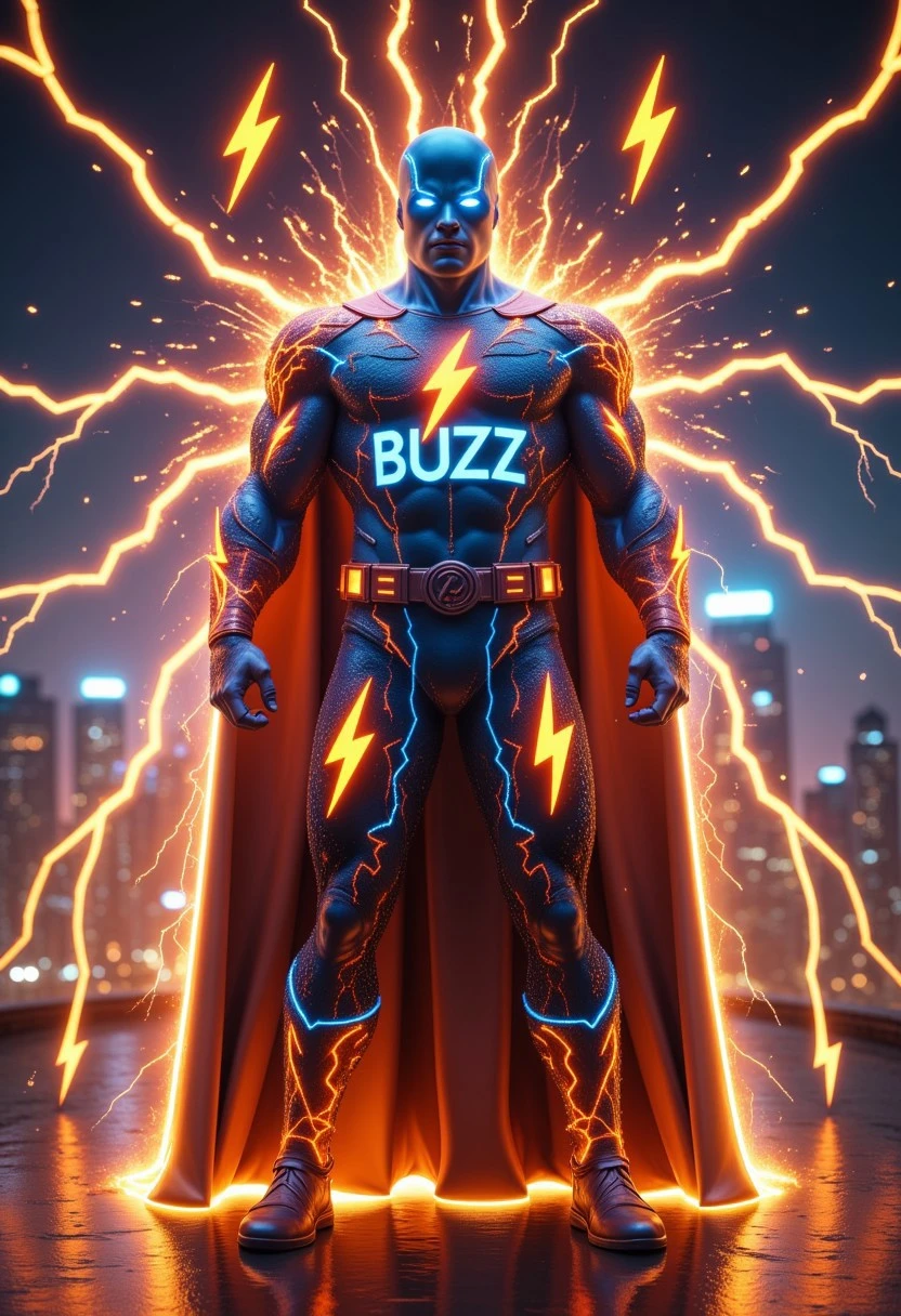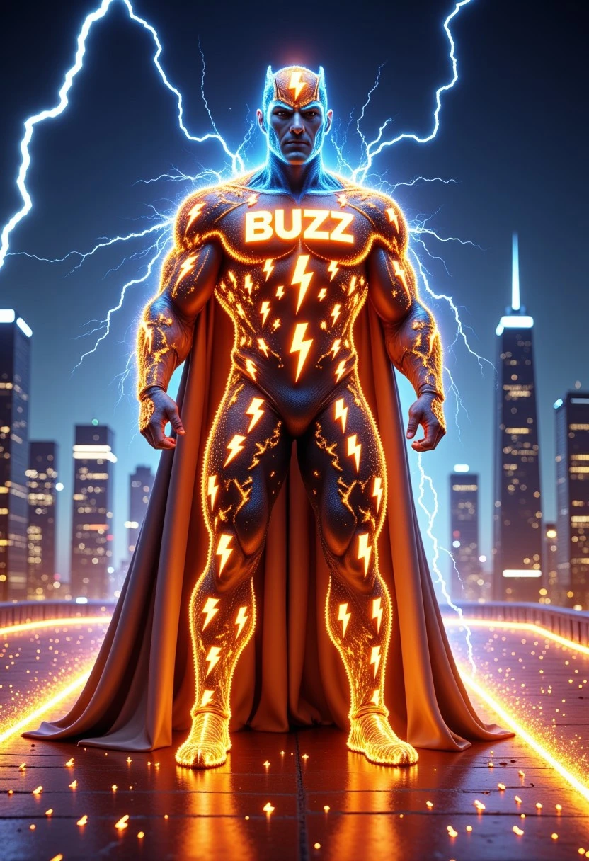 Version 2 of the Buzz Enhancer made from 90% new higher quality images. It adds stylized lightning bolt symbols (orange and blue), electric elements, fragments, sparks and energy, and is trained on the word BUZZ in orange, yellow and blue.