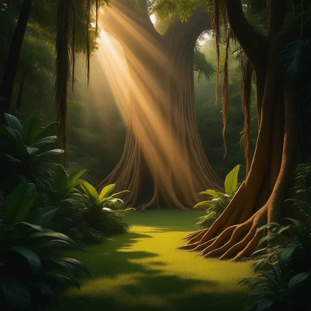 Perfect for lush fantasy landscapes, adventure backdrops, hidden jungle temples, mystical forest clearings, nature exploration scenes, or blending into larger worlds like lost civilizations, prehistoric environments, or serene tropical escapes. It adds intense organic depth, volumetric lighting, and immersive mood to any composition — ideal for world-building, atmospheric storytelling, or merging with characters and other styles for epic jungle journeys.