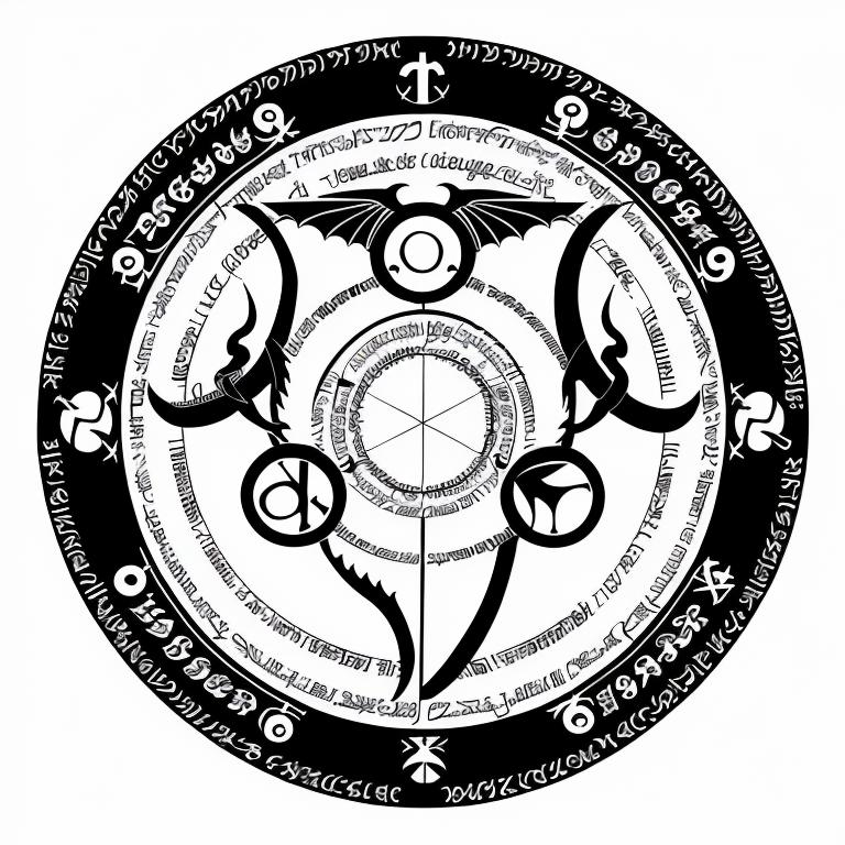 • nvjobmagiccircle magic dragon summoning circle, inscriptions, symbols, white background, black and white