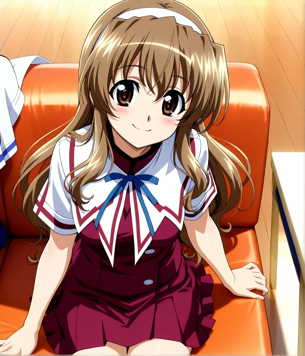 haruka_nogizaka,haruka,17 year old girl, white_headband,long hair, brown_hair,brown_eyes,large_breast,innocent smile,