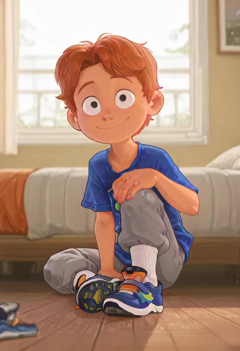 blue t-shirt, shoes, grey pants, white socksOr whatever else you want.