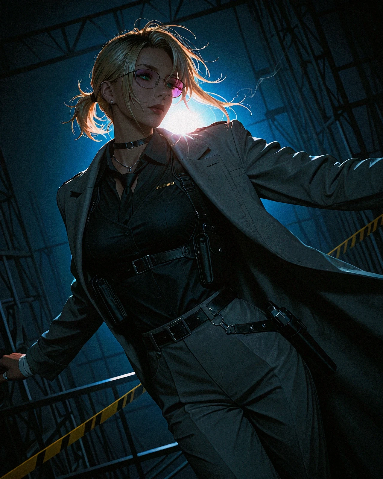 post-processing nodes with sharpening, bloom, grain, tone curves for more texture in final image. (see workflow in images)