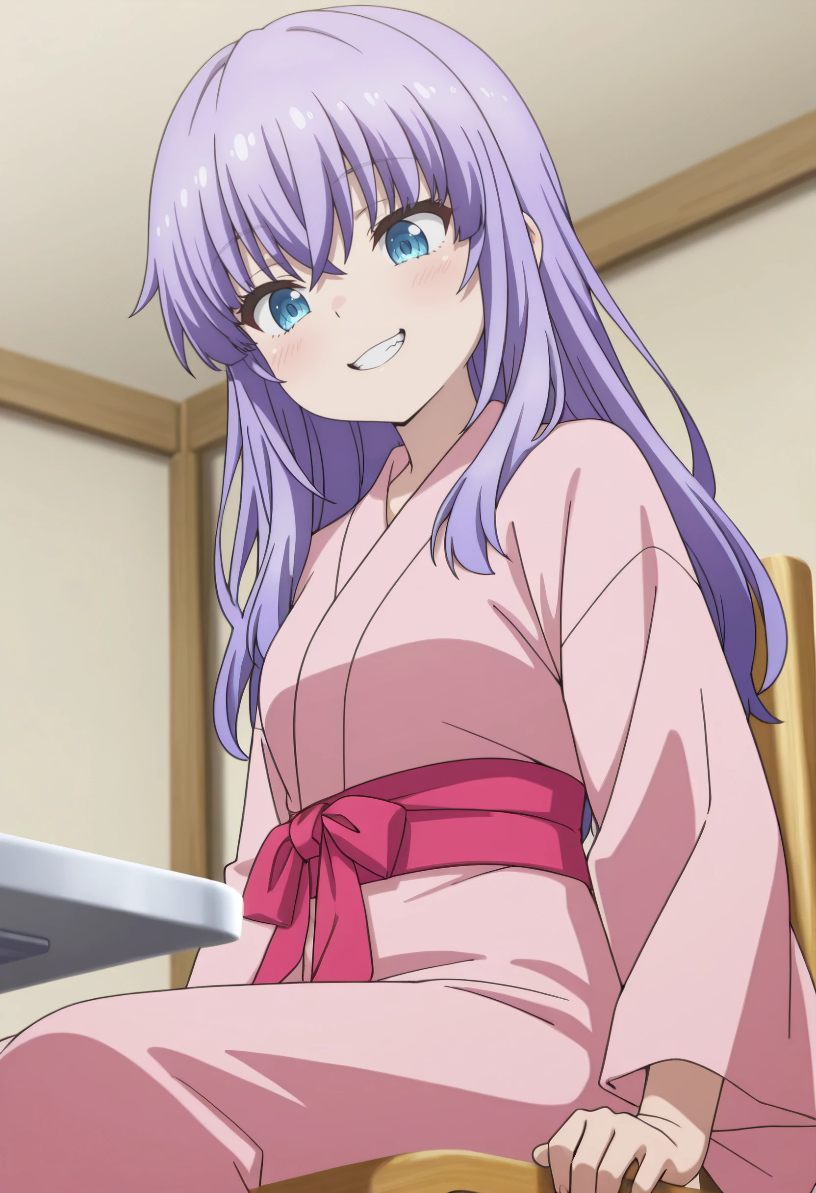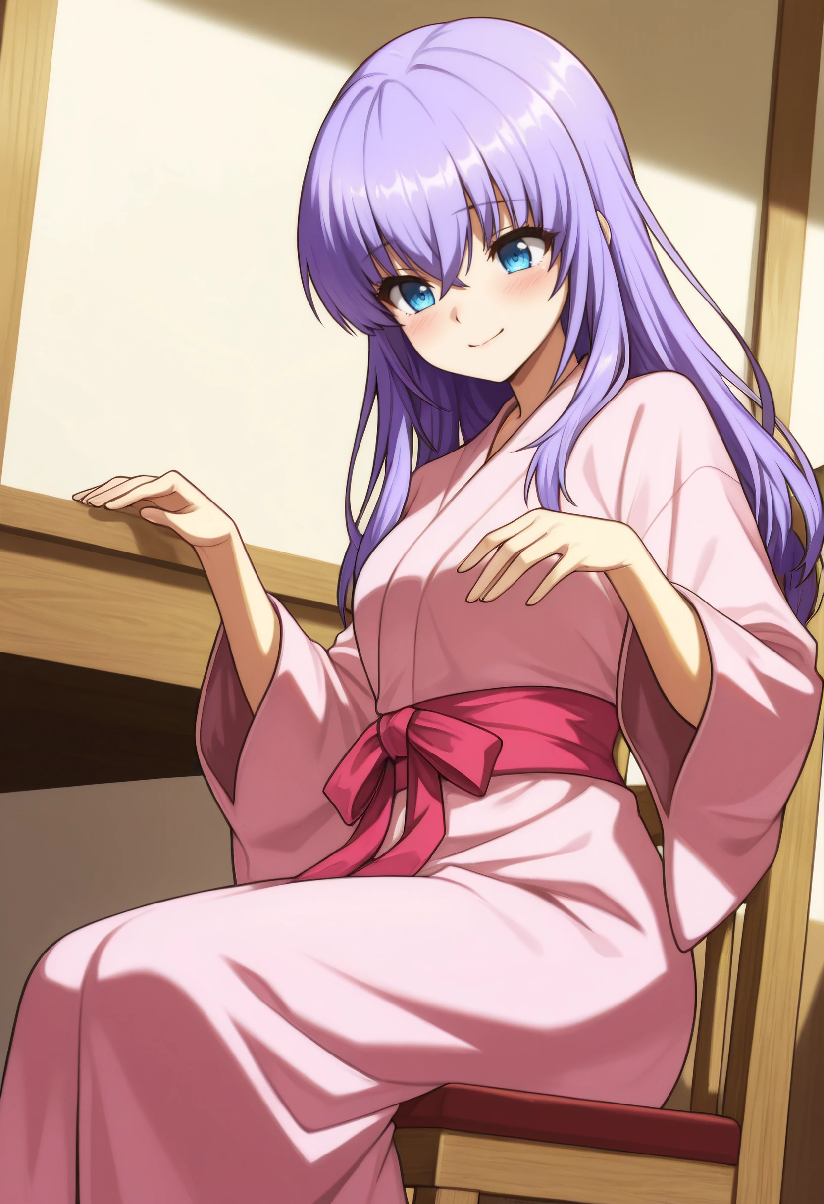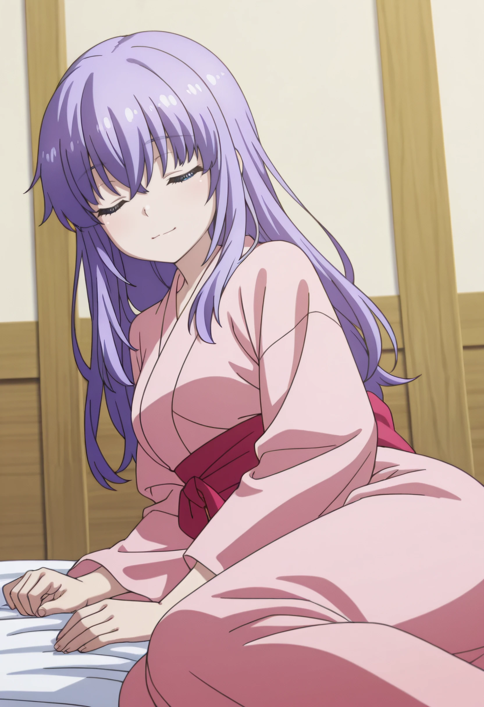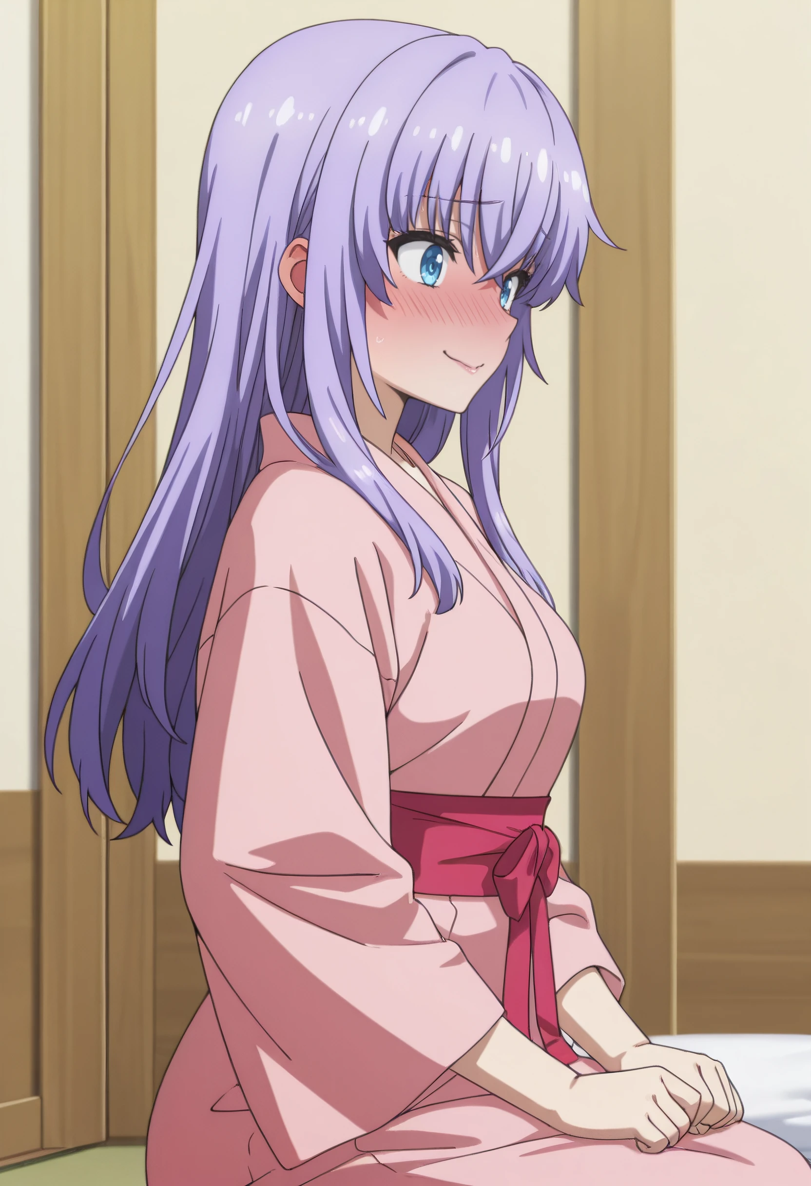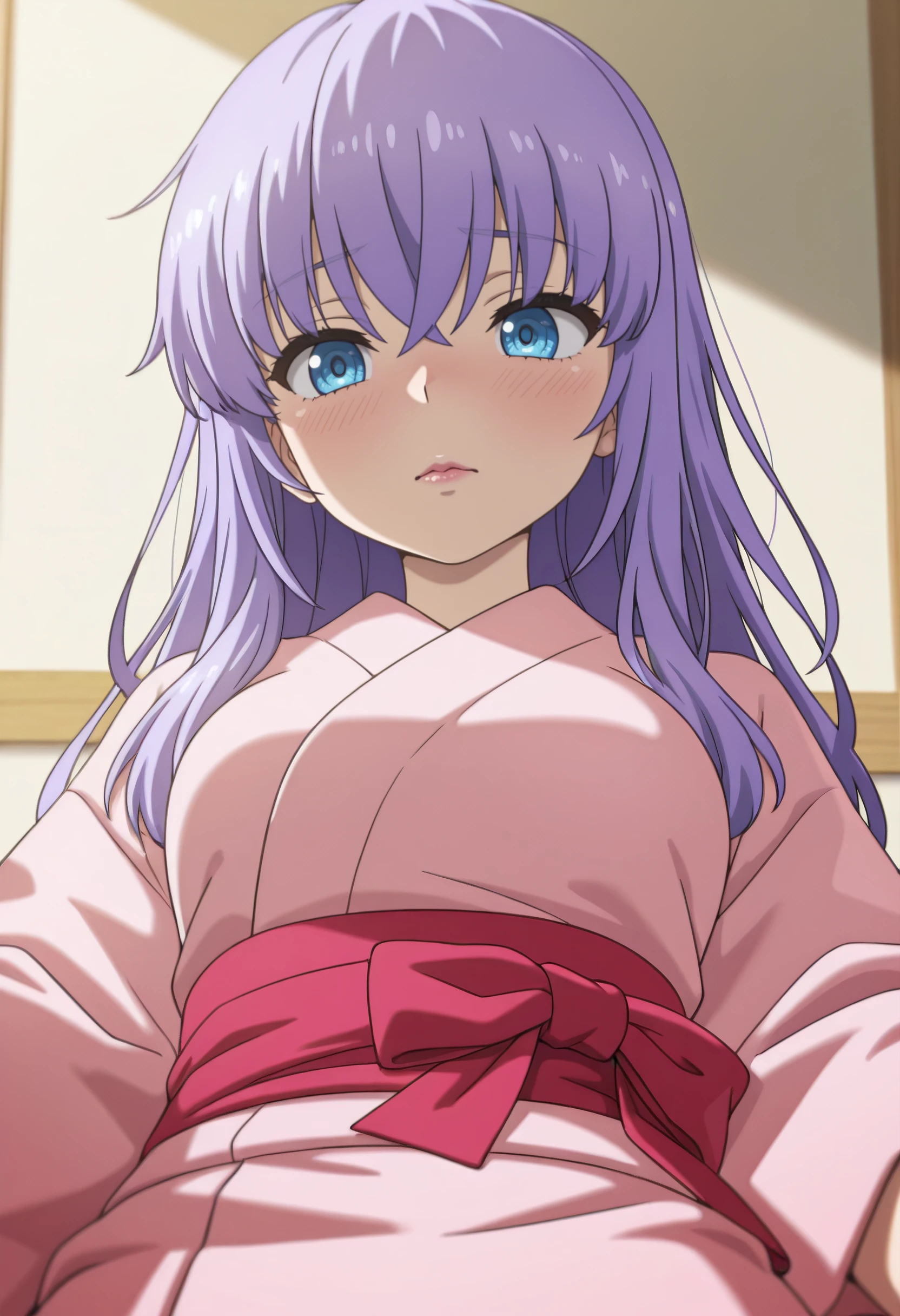 AiKimono, japanese clothes, kimono, long sleeves, pink kimono, sash, red sash,