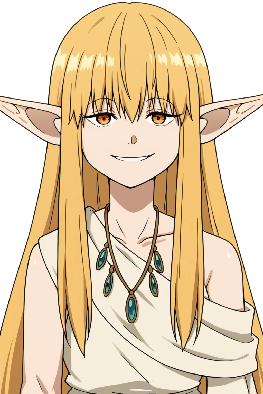 s3r13, elf, blonde hair, very long hair, orange eyes