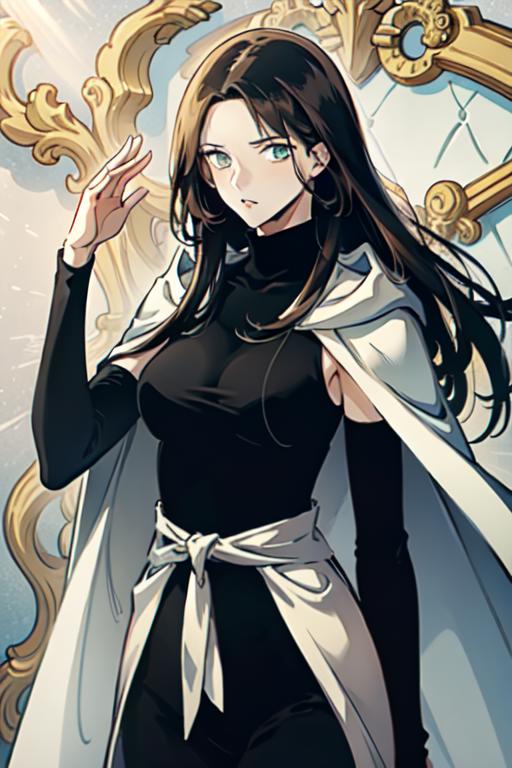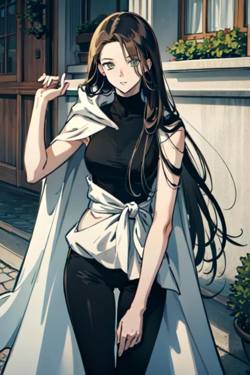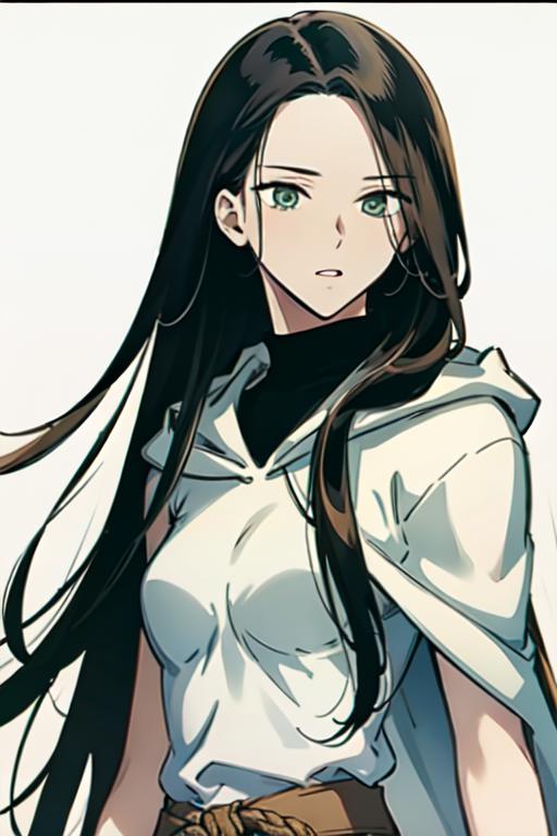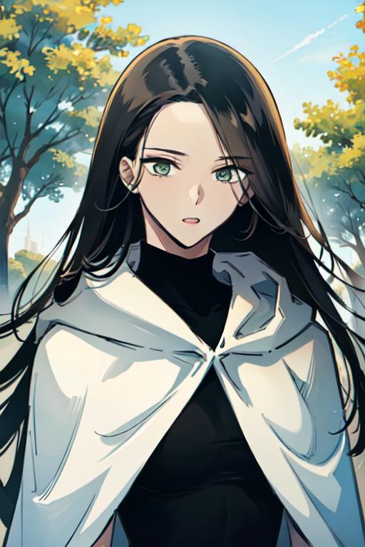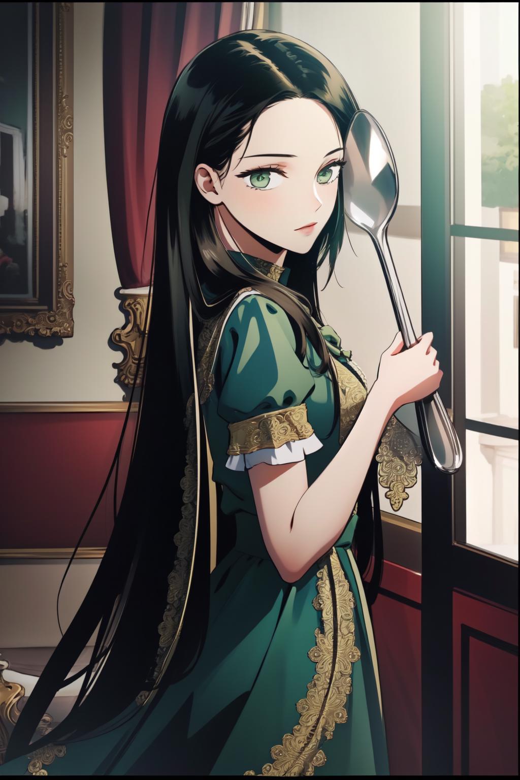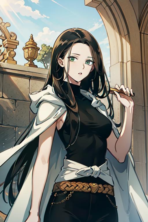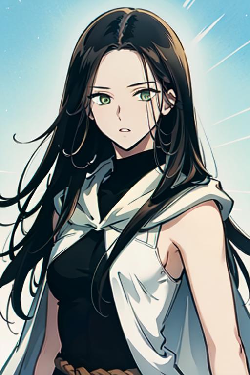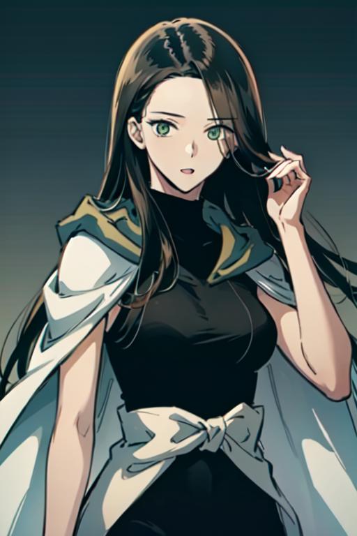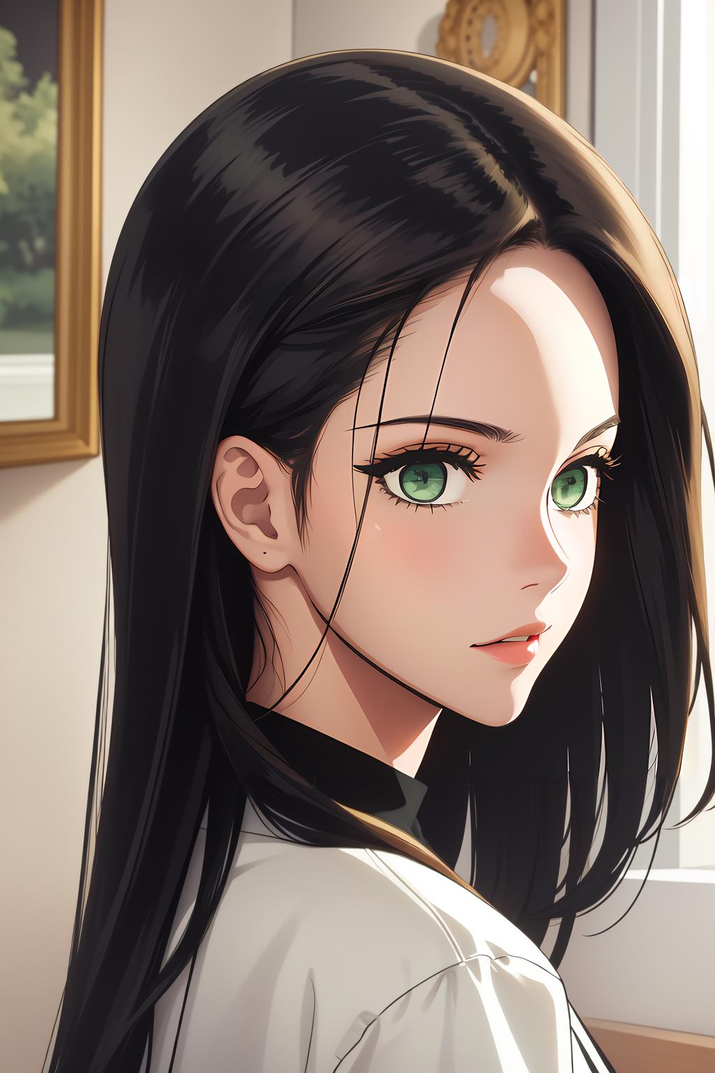 altairdb, very long hair, (green eyes:1.4), (black hair:1.4)