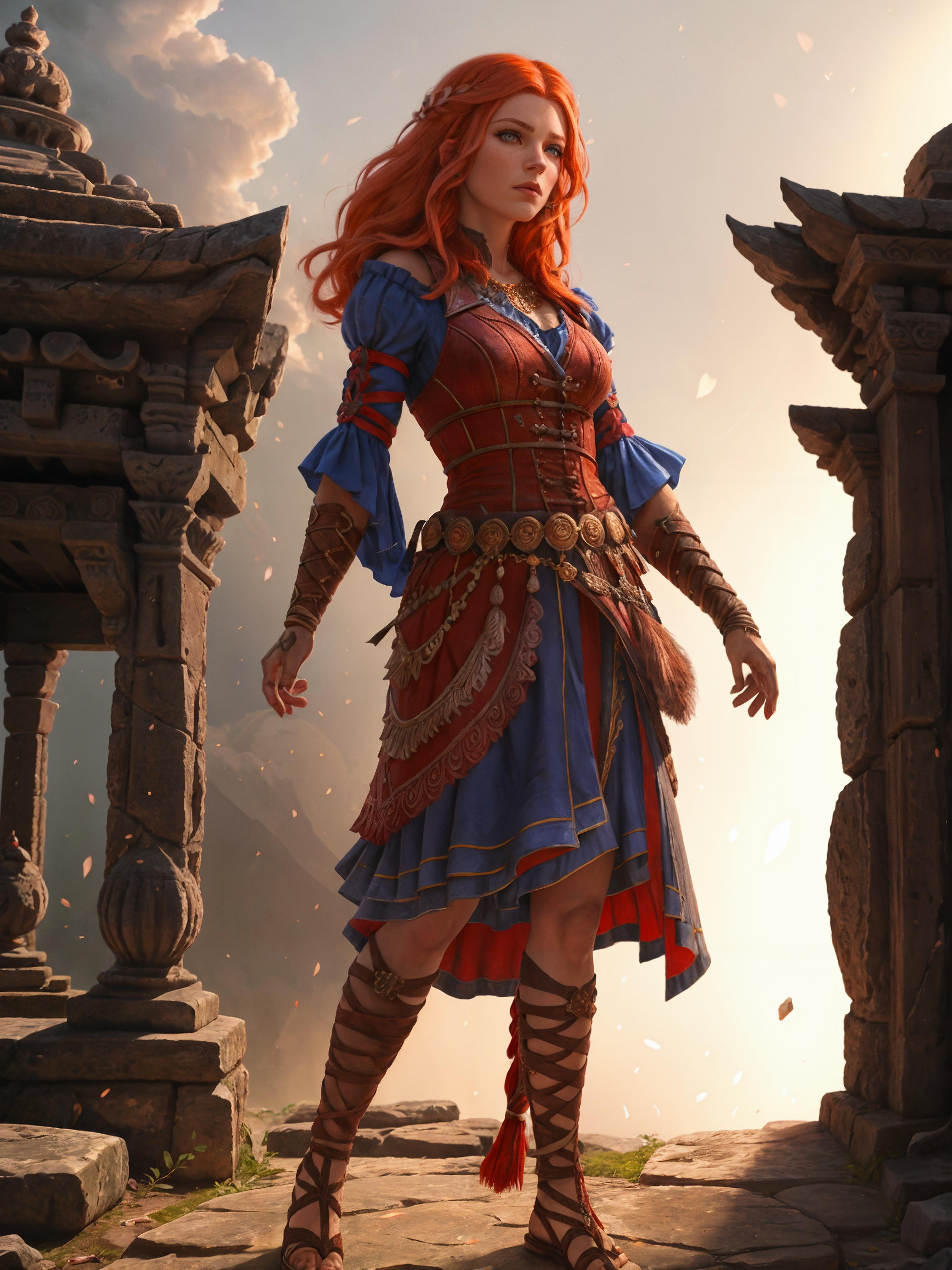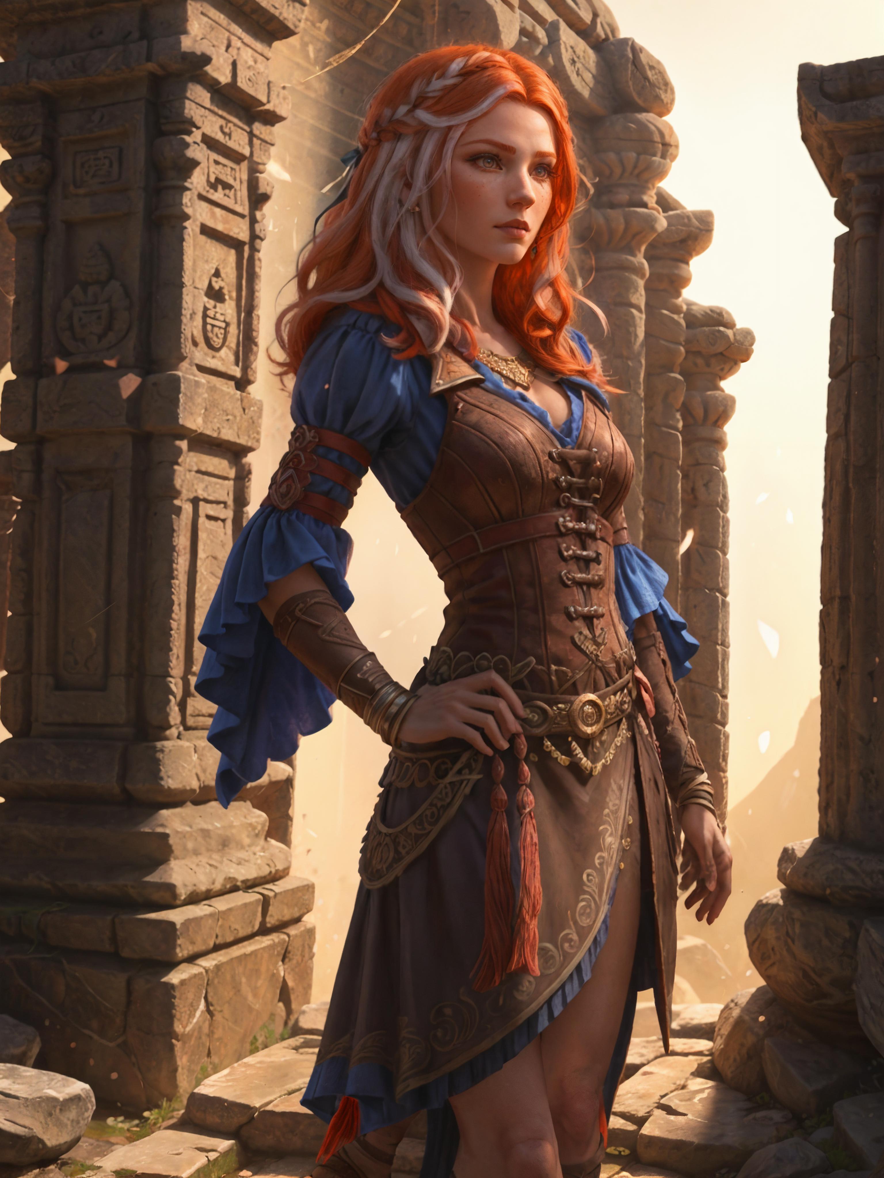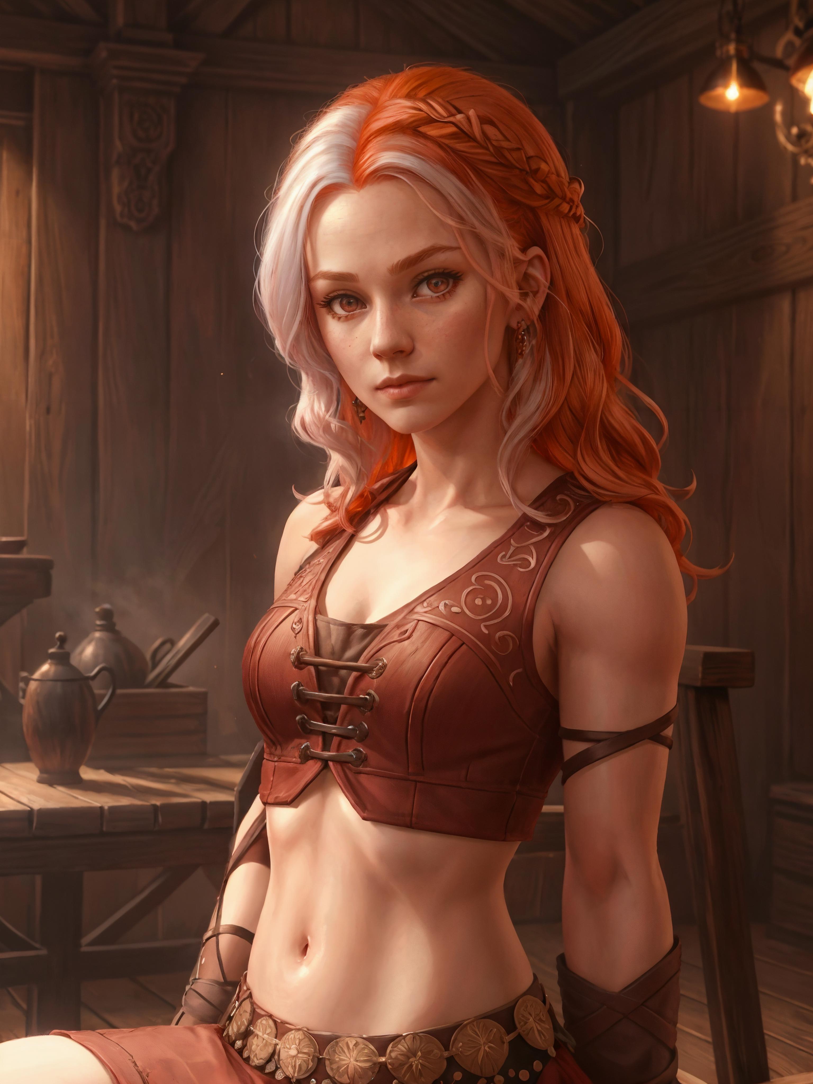Example promts; talojilohse standing in front of an ancient temple, (redhead), (small white hair streak on left side:0.98) / talojilohse standing in a forest / talojilohse with crop top sitting on a room.
