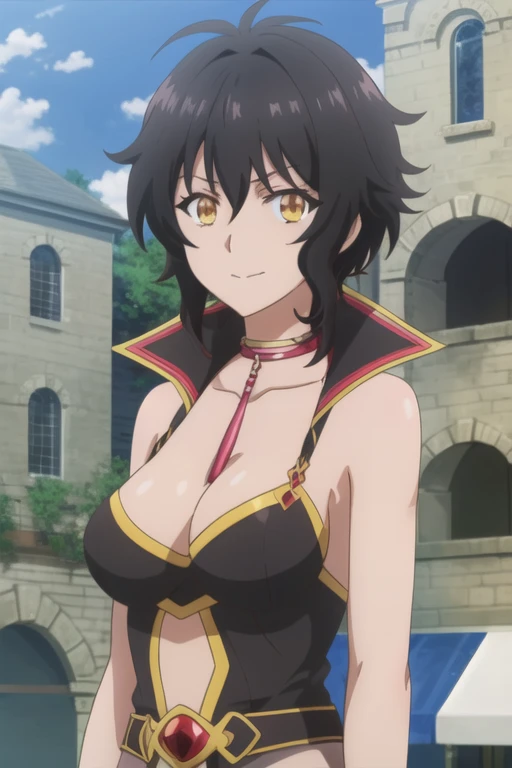 Trigger Words: remia (isekai cheat magician), short hair, black hair, yellow eyes