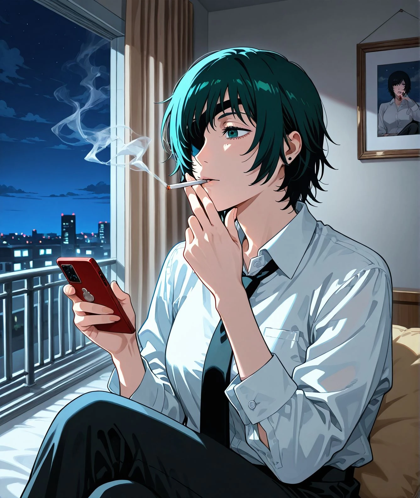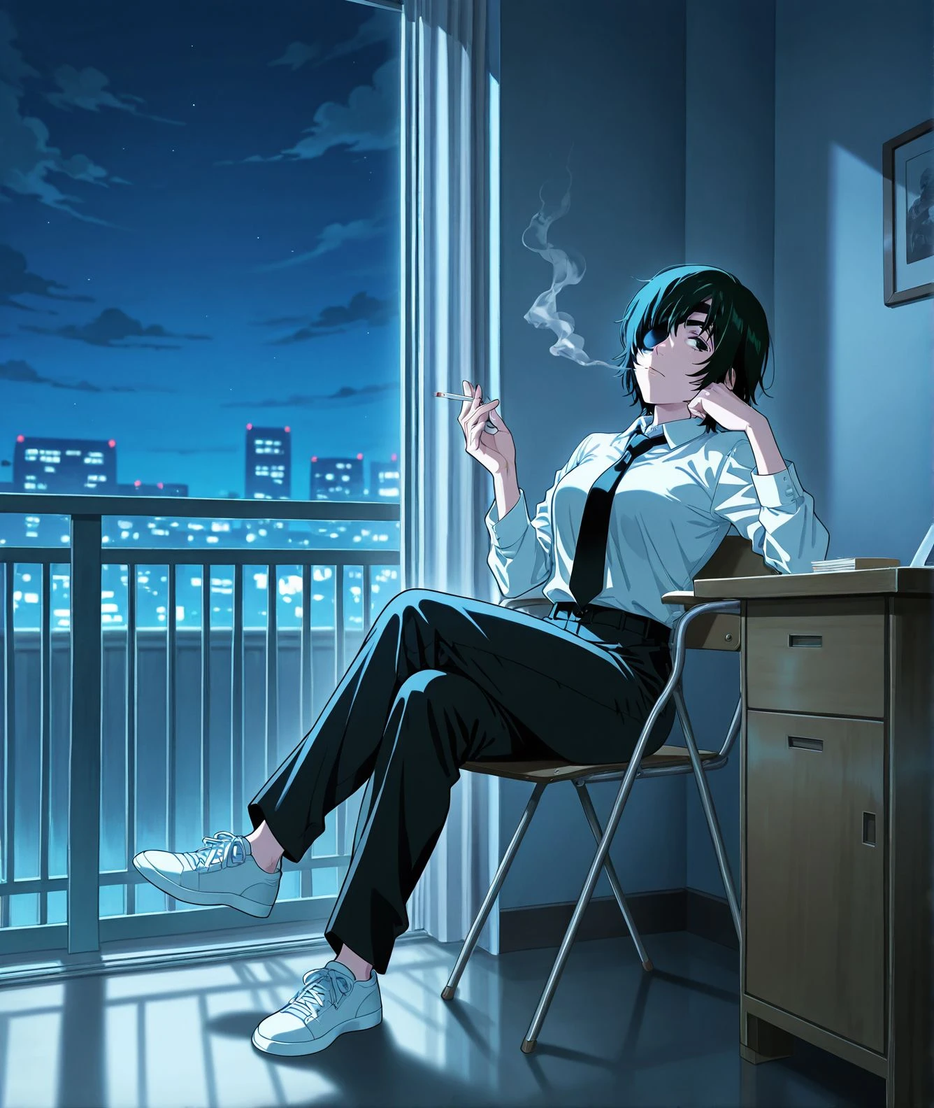 1girl, smoking, cigarette ,sitting,