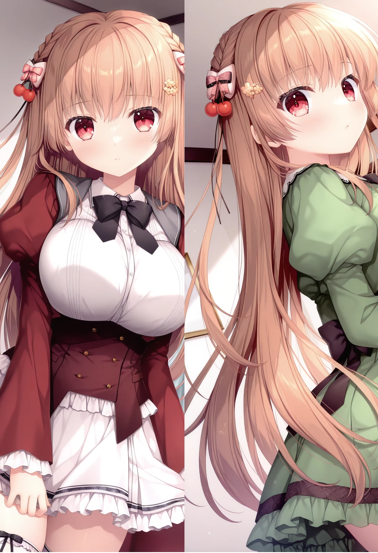 Trigger words: c-shirahane, very long hair, light brown hair, hair bow, cherry hair ornament,