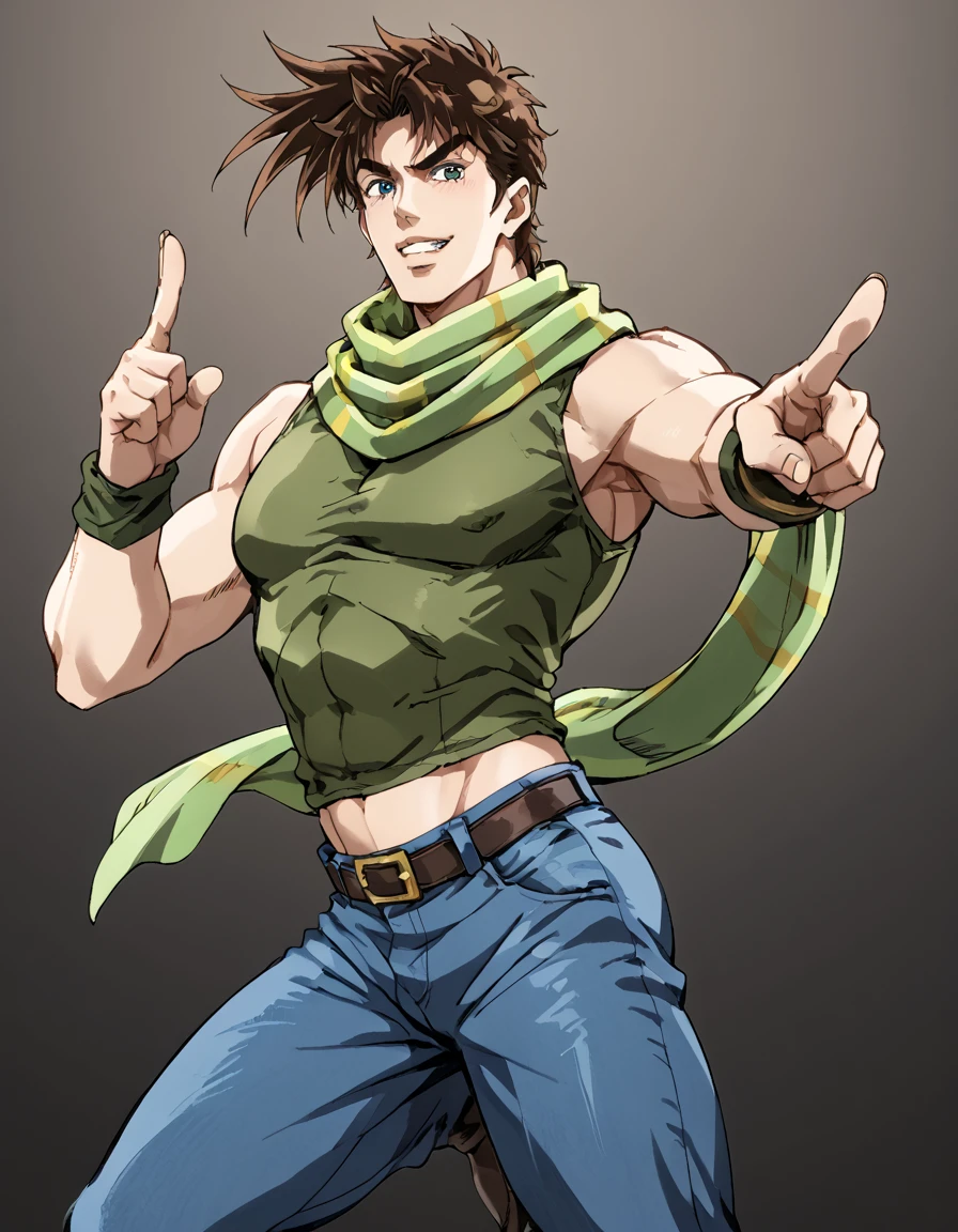 Young Joseph Joestar for Ponyprompts: Joseph Joestar, scarf, green shirt, blue jeans, black boots
