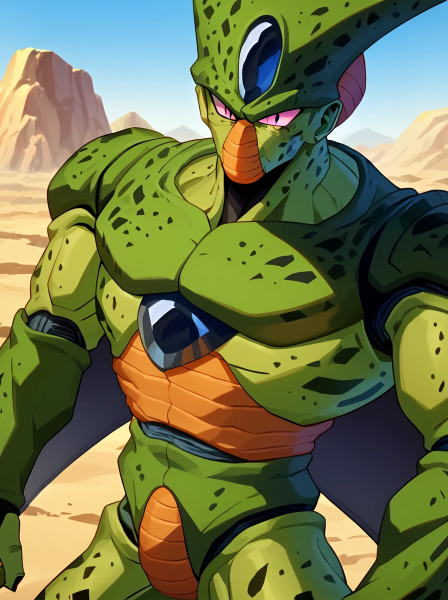 This is a pony model of the Dragonball Z villain Imperfect Cell. It works well when the Sampling Steps are at or around 35, and with a GFC Scale of at or around 12. A weight of 0.85 is suggested. Much of be low those settings the thing starts to look increasingly mutated. The more trigger words used related to the lora the better the results.