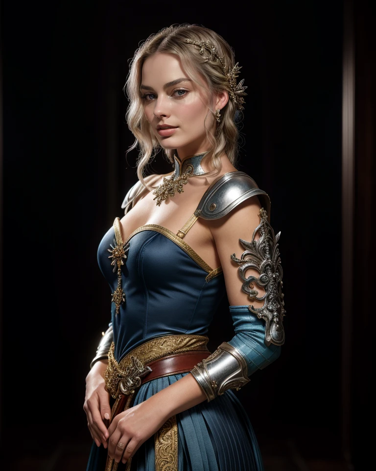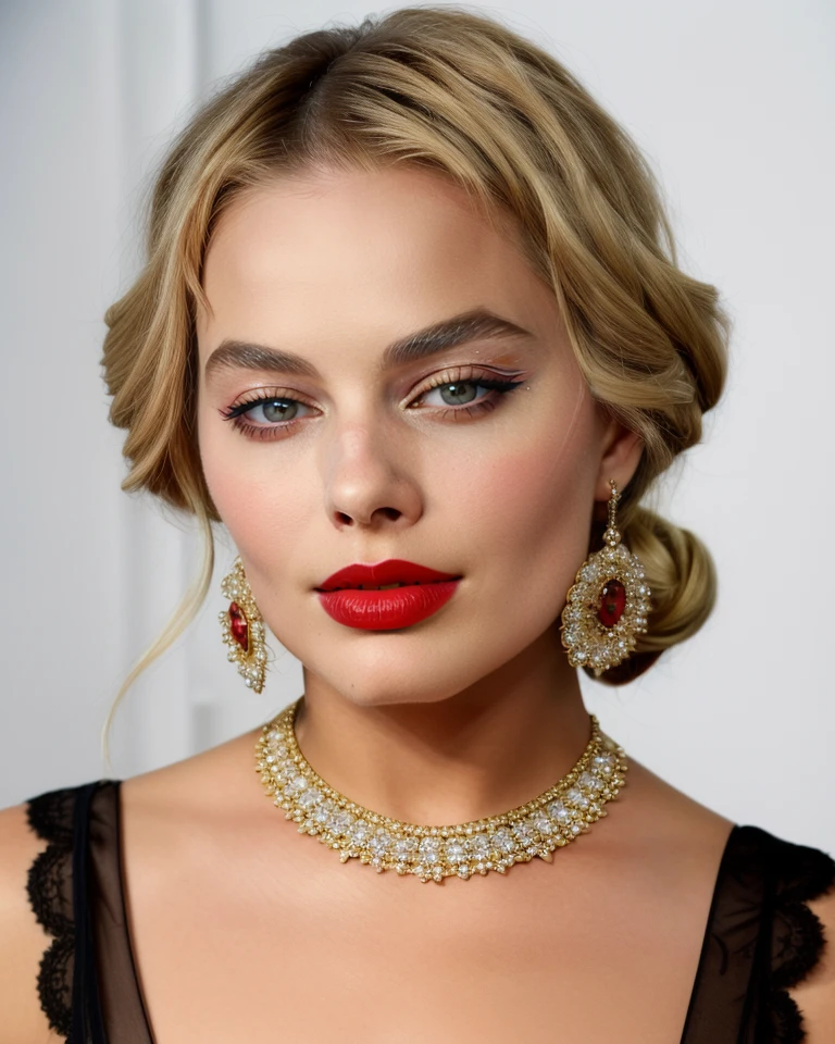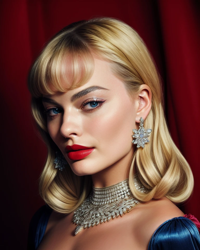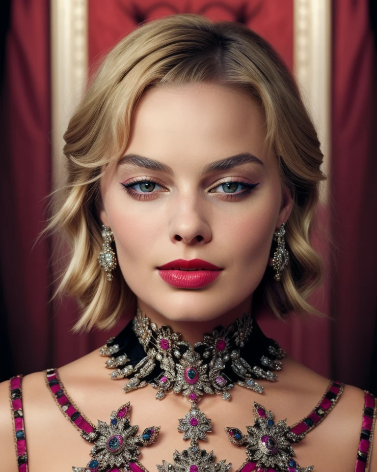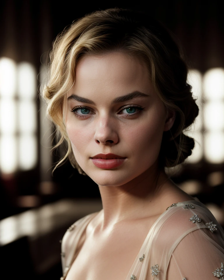 cinematic still , realism, photorealistic, best quality, masterpiece, intricate,realistic, photo , , <lora:margotrobbiequiron_v02i05e15t05nr77na77ada_Lora:1> margotrobbieQuiron woman, blond hair, a woman, In the echoing halls of an art deco hotel, with geometric patterns and golden accents, a cinematic photo captures a moment of timeless style. Full body shot focus, Photorealistic portrait in breathtaking detail, photo scanned at ultra-high resolution, inspired by Helmut Newton and Peter Lindbergh. Illuminated by a classic chandelier, against a backdrop of luxurious marble, a poised expression, subtle smoky eye makeup, hair styled in soft waves, wearing a sequined flapper dress with fringe details, a thin gold chain belt, and T-strap heels, embodying the roaring twenties elegance. 35mm photograph, film, bokeh, professional, 4k, highly detailed, very beautiful, elegant, intricate, surreal, , dark, mysterious, dramatic, ornate, detailed, . emotional, harmonious, vignette, highly detailed, high budget, bokeh, cinemascope, moody, epic, gorgeous, film grain, grainyπππ