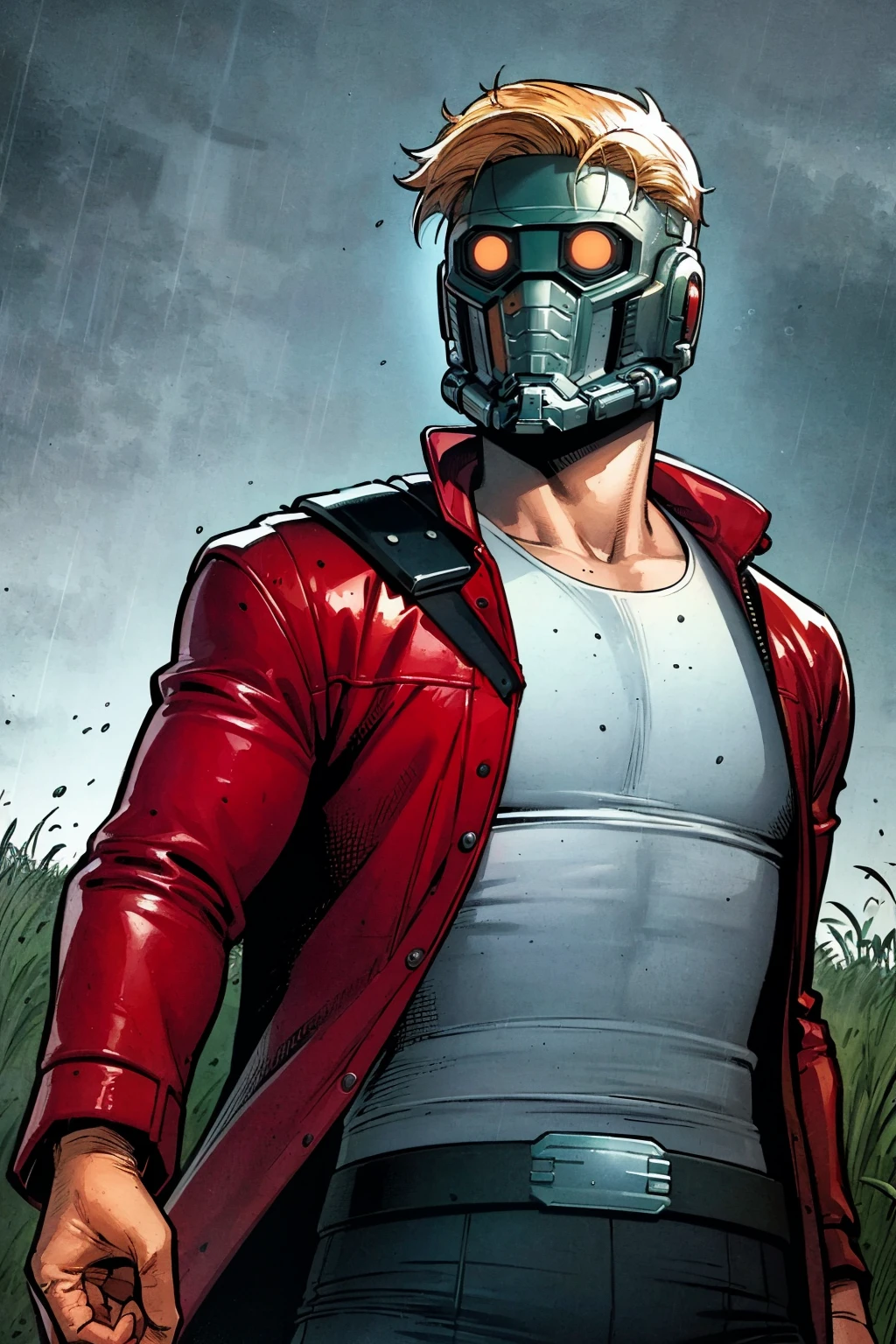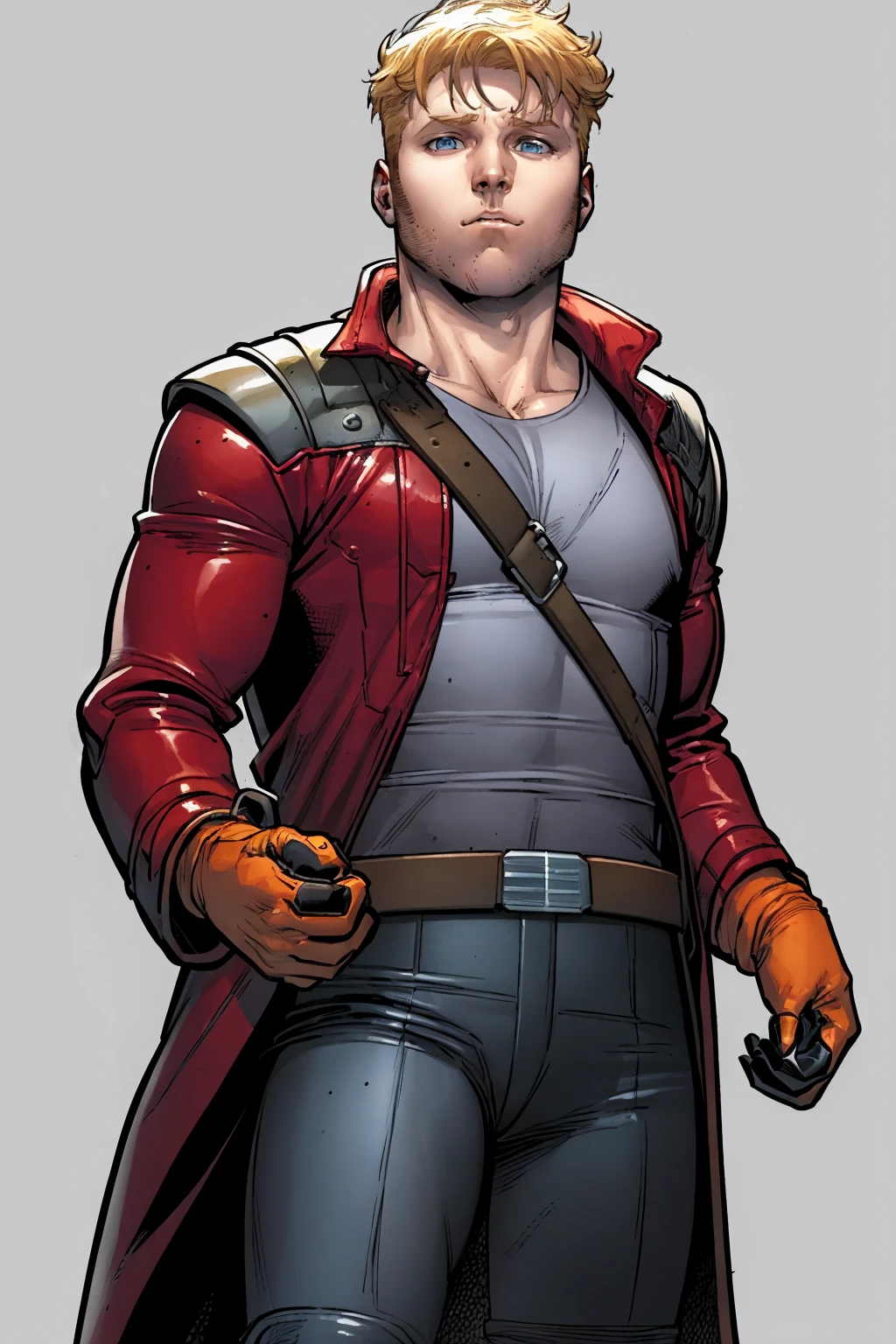 No mask prompts : 1boy, peterquill, blonde hair, short hair, blue eyes, sideburns