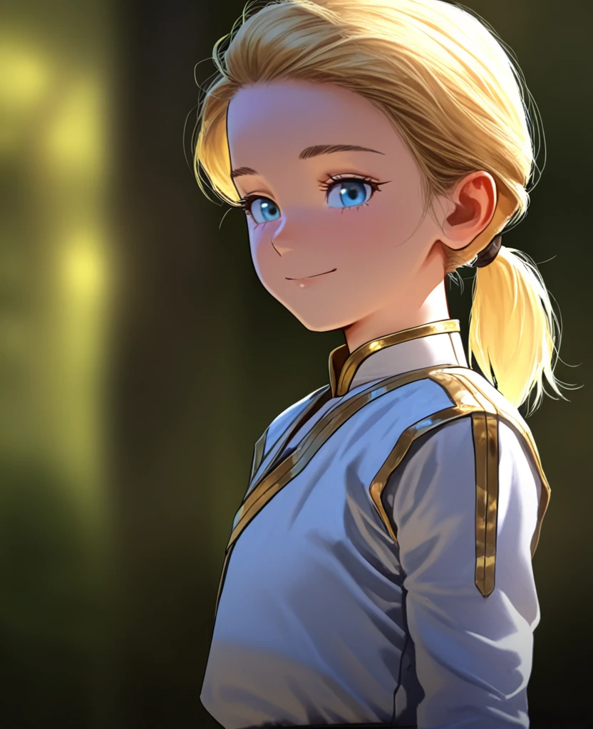 Vaylin with blonde hair and blue eyes, prior to her corruption and ??????? by order of the Emperor, her father, Valkorion. One of many that Senya Tirall, her mother, failed to save.