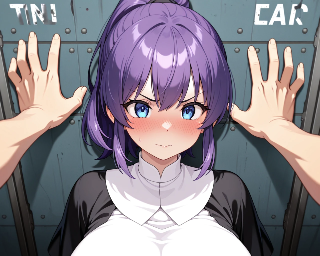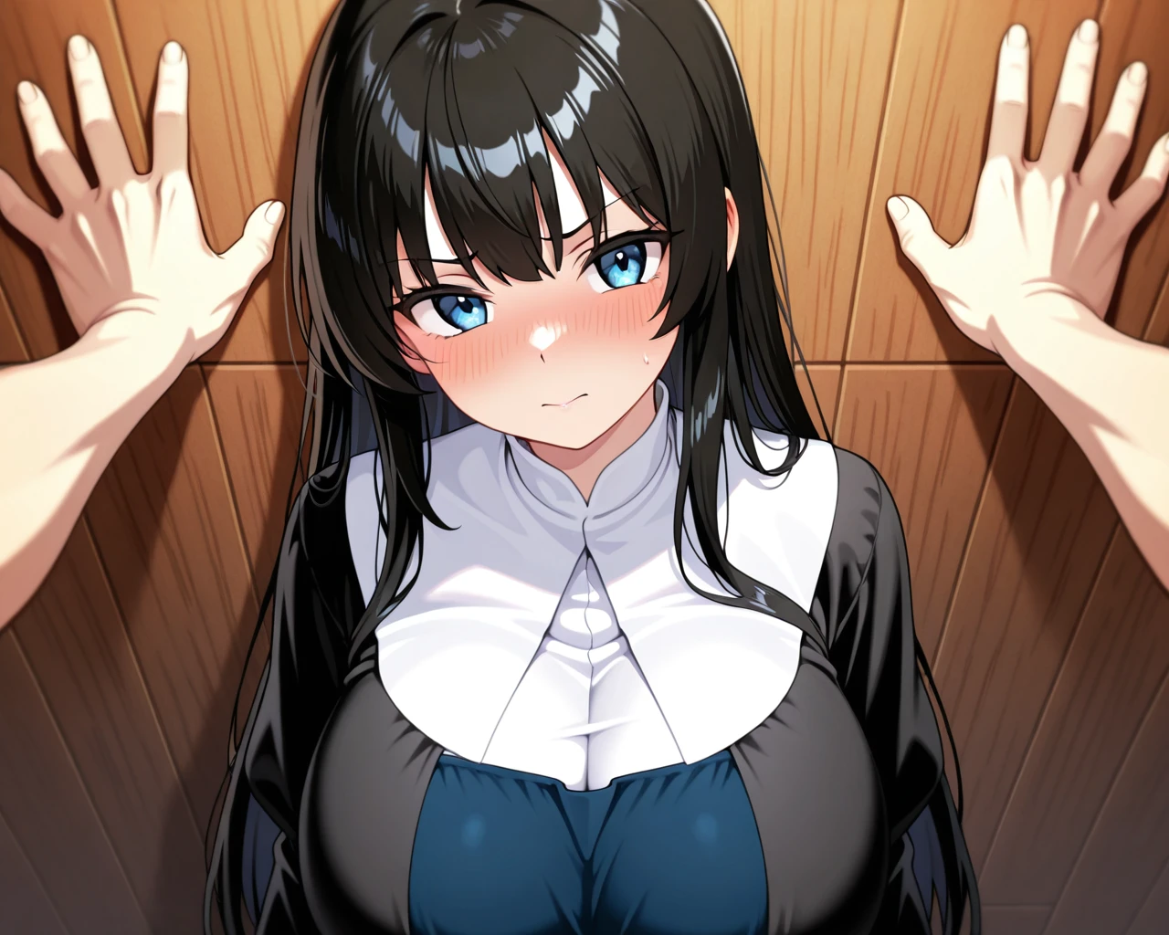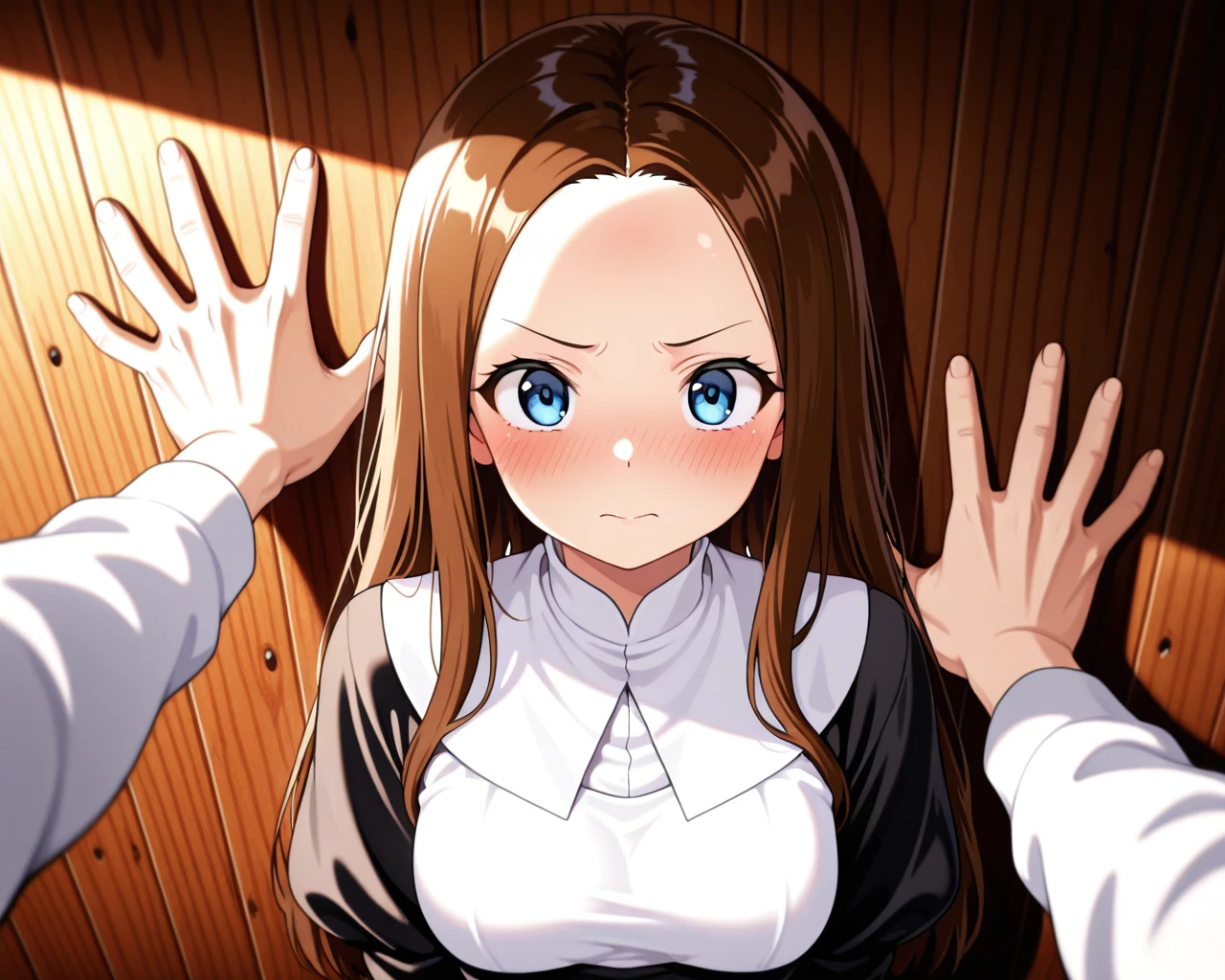 0.3–: Looks like a standard wall-pinning (kabedon) pose