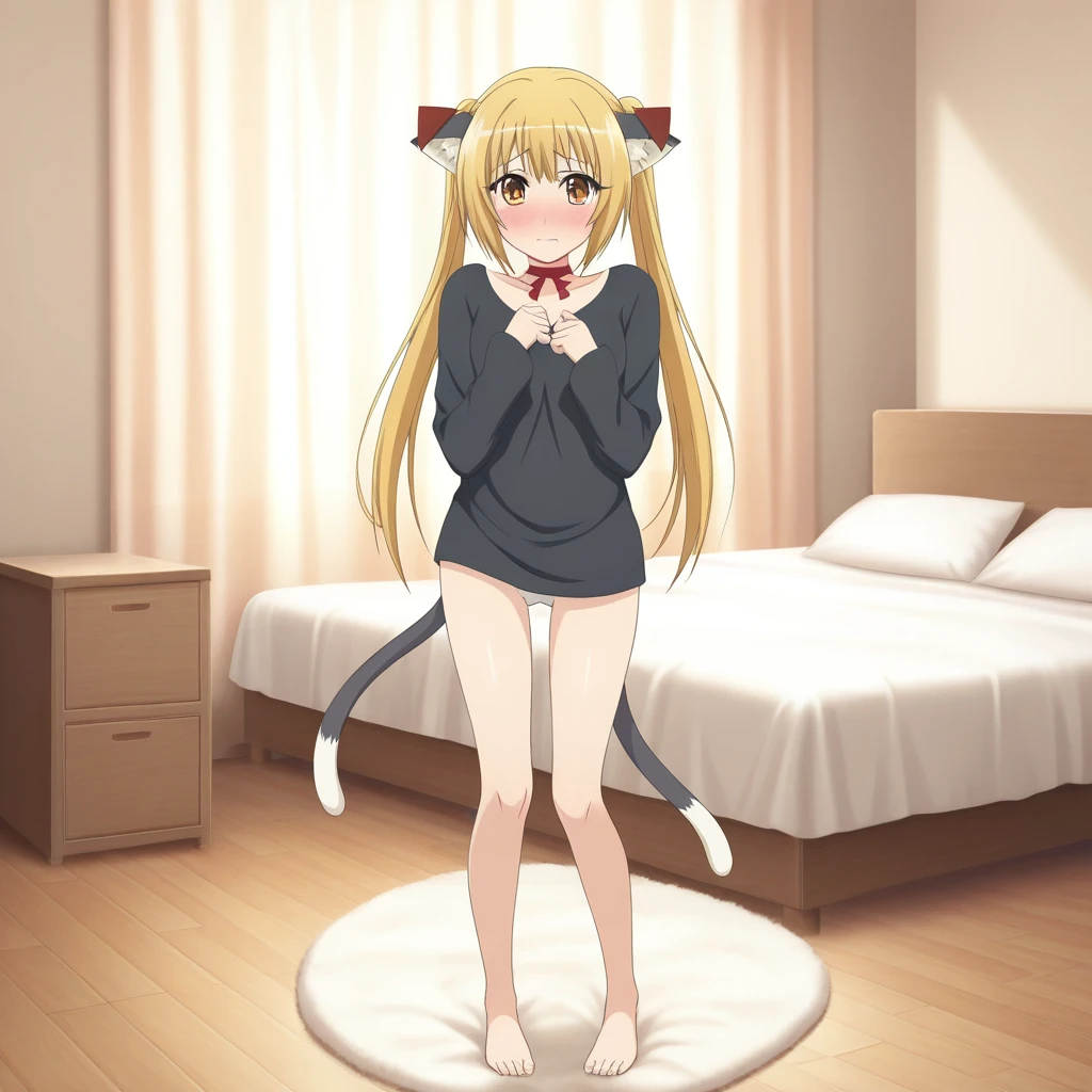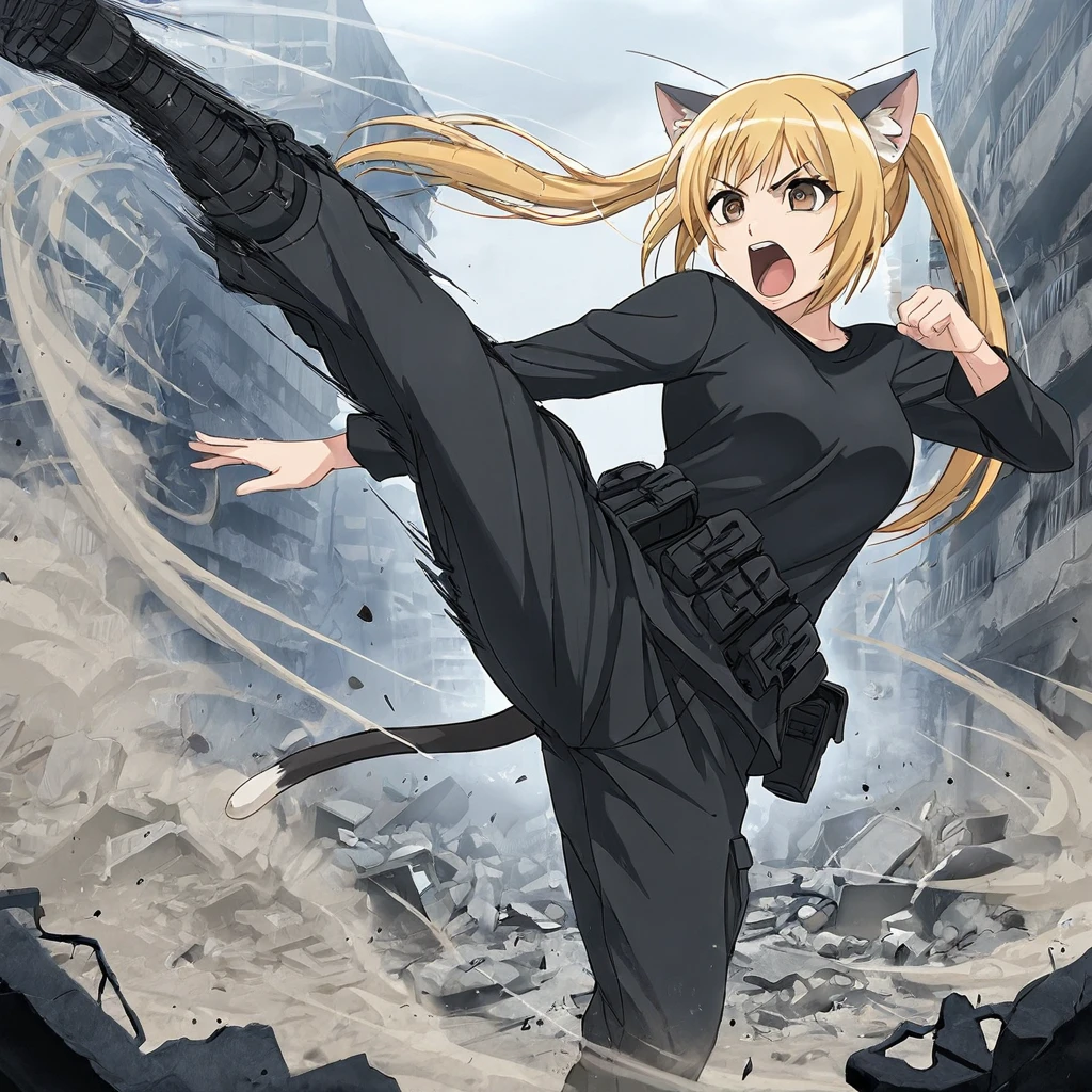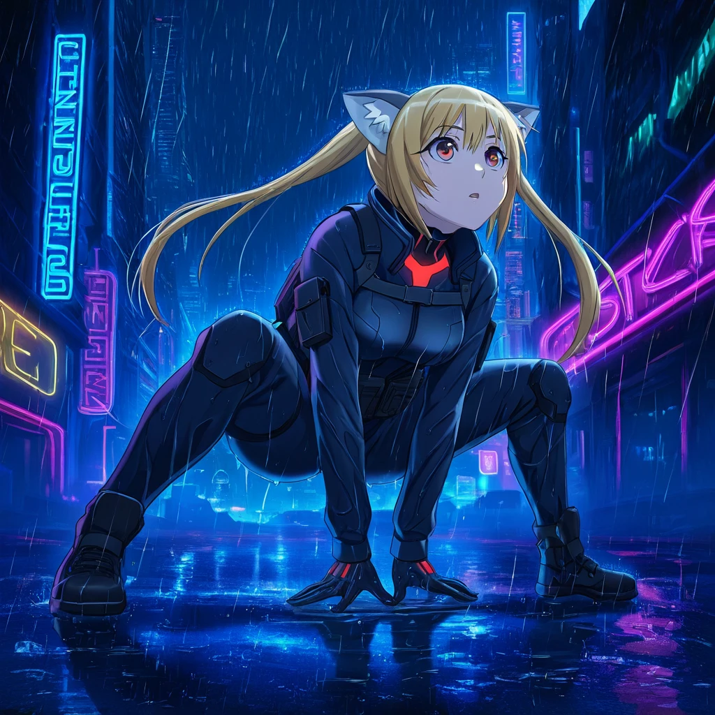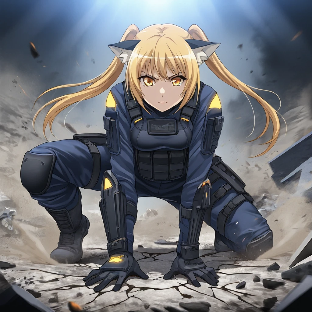 Hair: Blonde twintails emphasizing her wild yet cute nature.