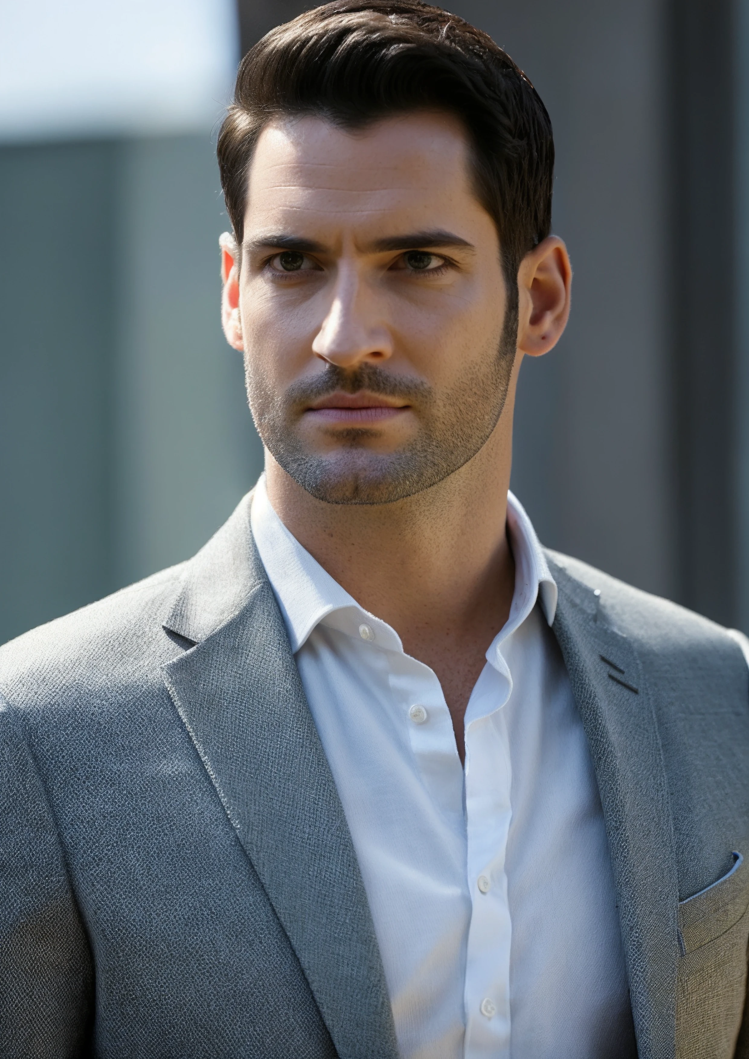 This is Lucifer Morningstar he's from the tv show called Lucifer where he has a devilish good time. The actor playing him is Tom Ellis. For "human" Lucifer just use the trigger word Lucifer, if you want him to have red glowing eyes put in Lucifer, Red Eyes. Last but not least if you want him to have a devil face just put in Devil Face without Lucifer. You have to play with the prompt to get that one right, enjoy