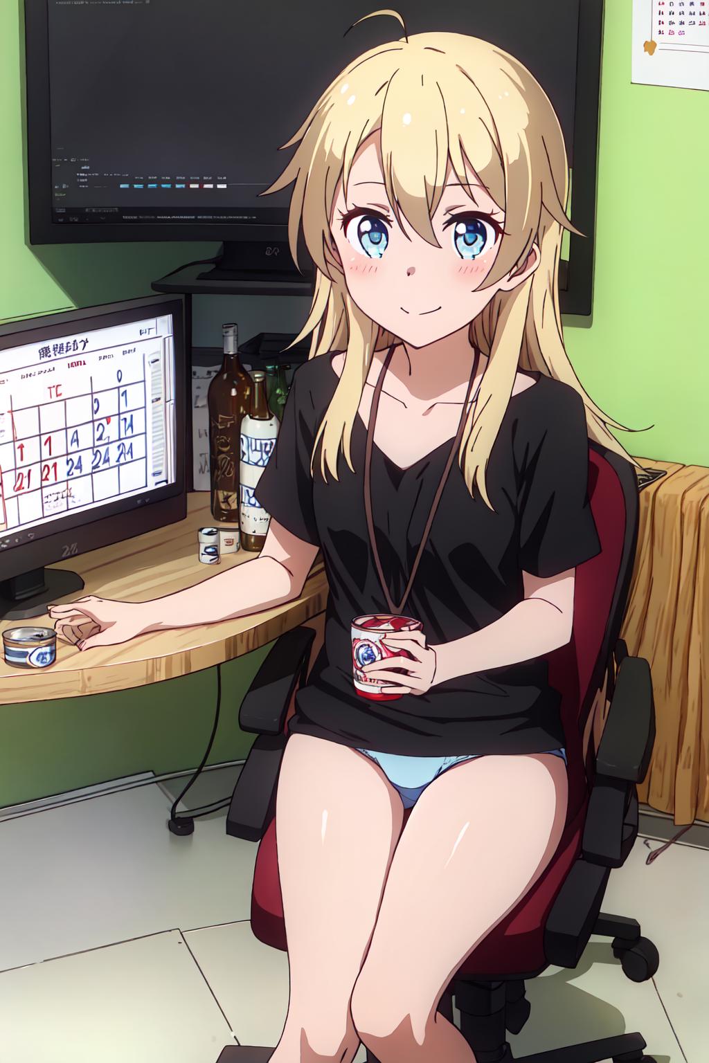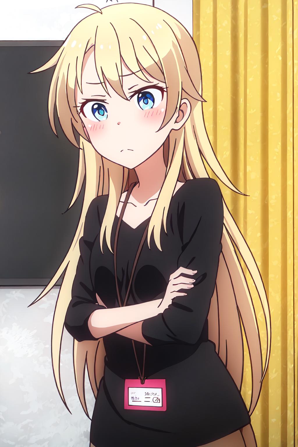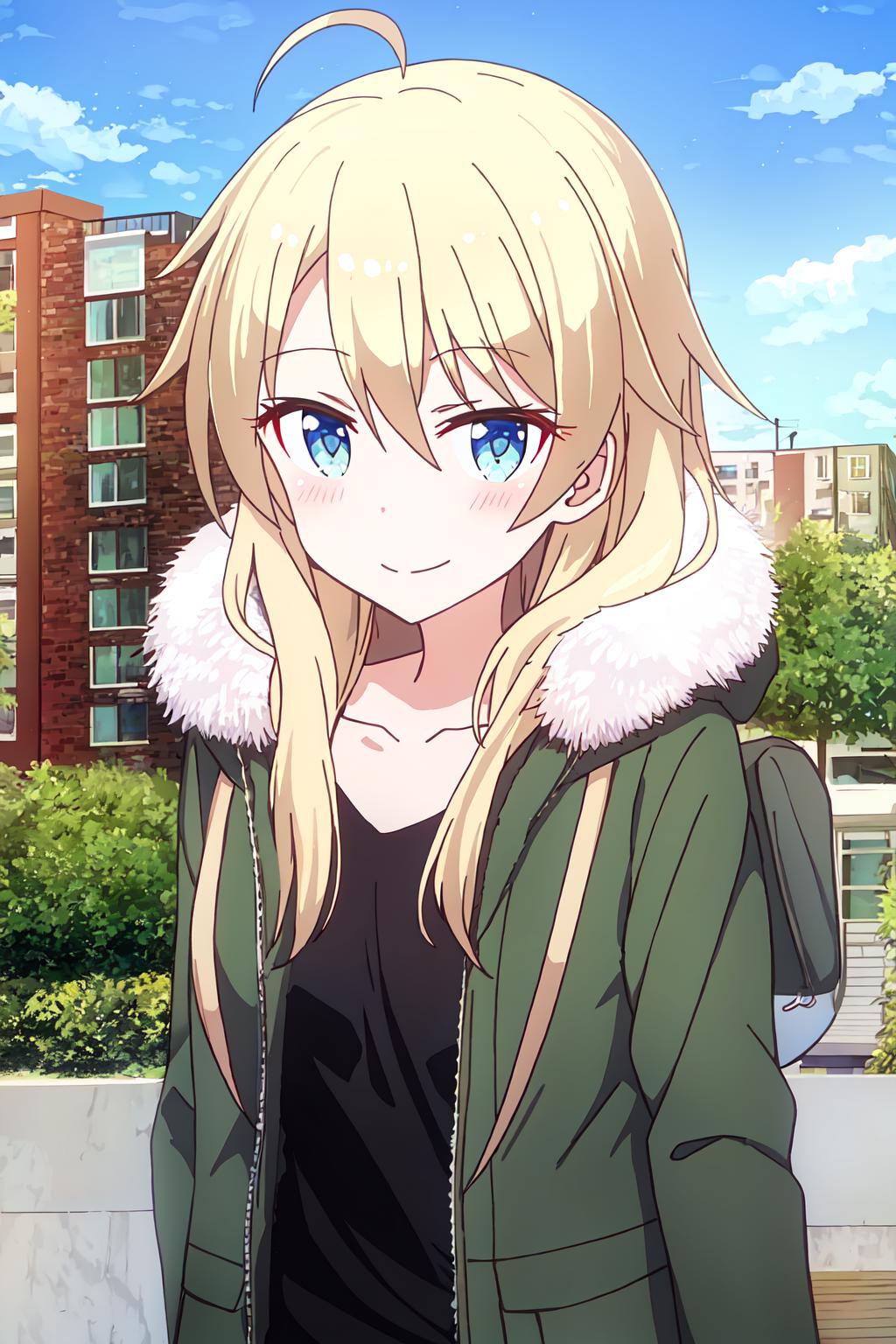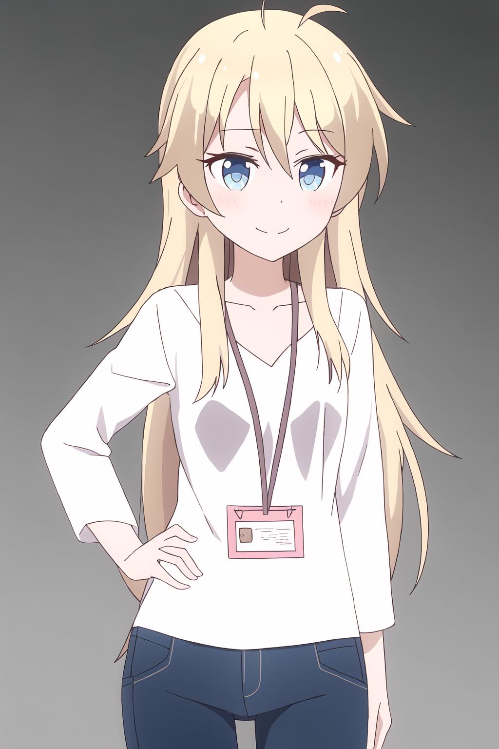 Yagami, long hair, blue eyes, blonde hair, bangs, hair between eyes, ahoge,