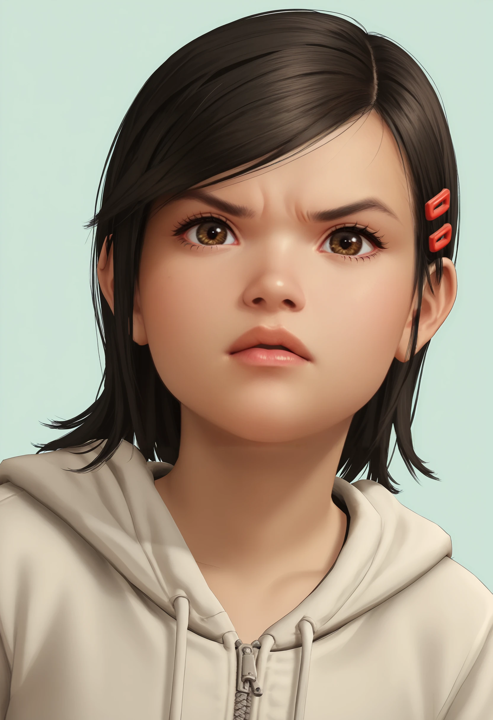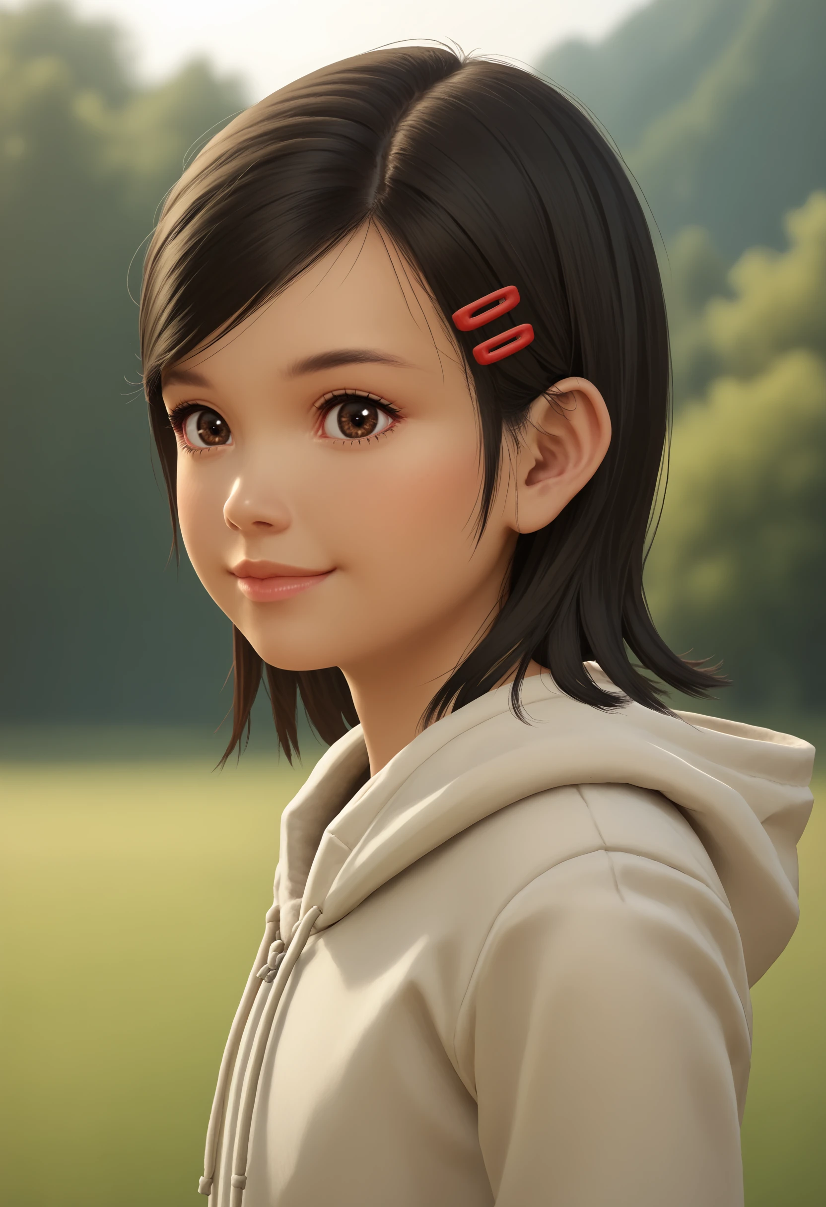 1girl, lips, brown eyes, short hair, black hair, swept bangs