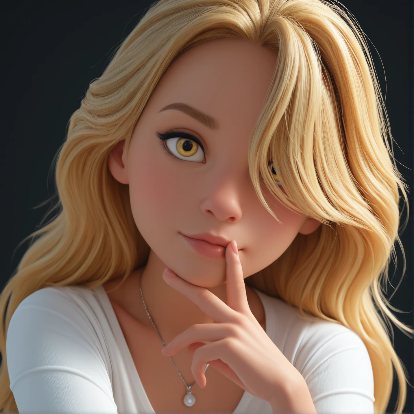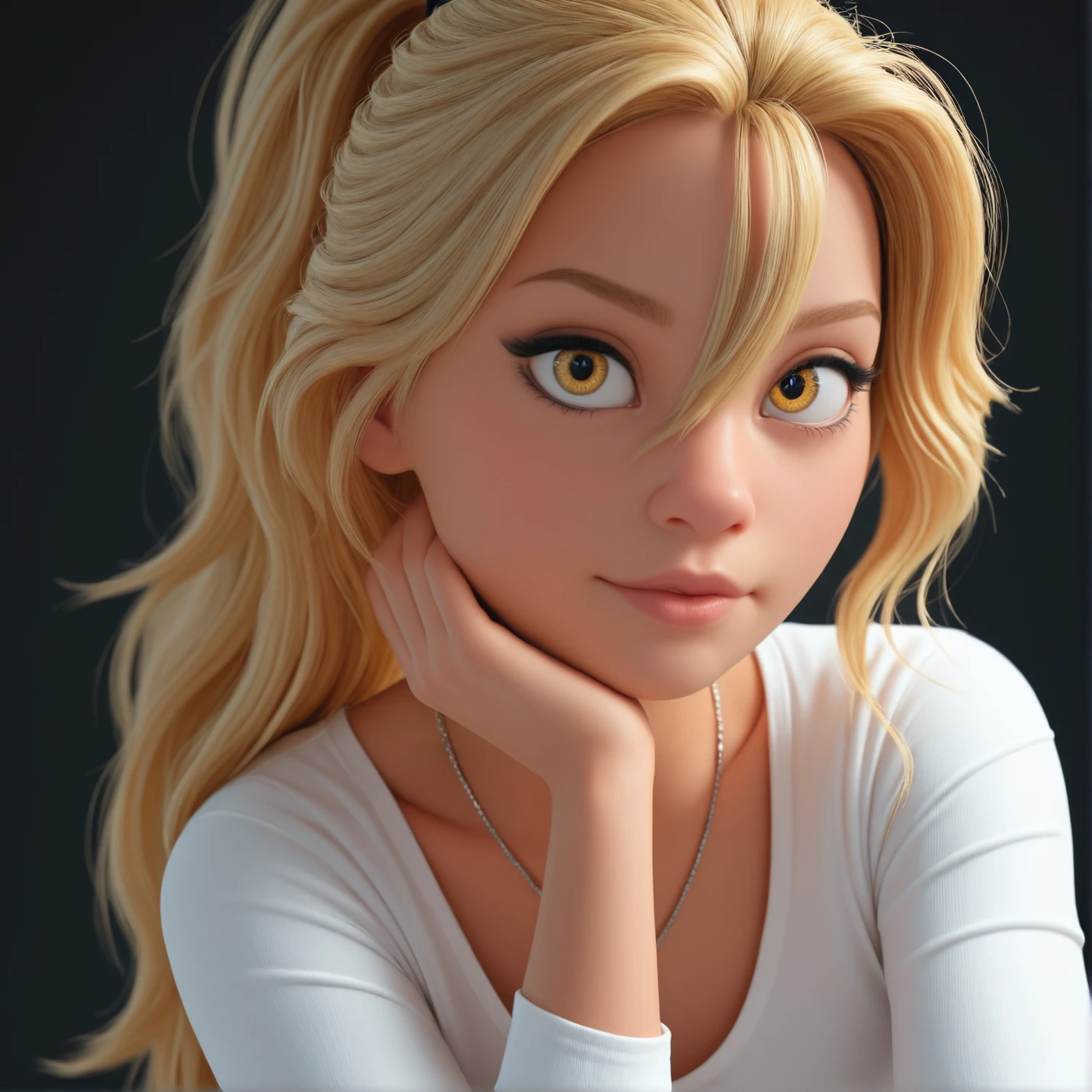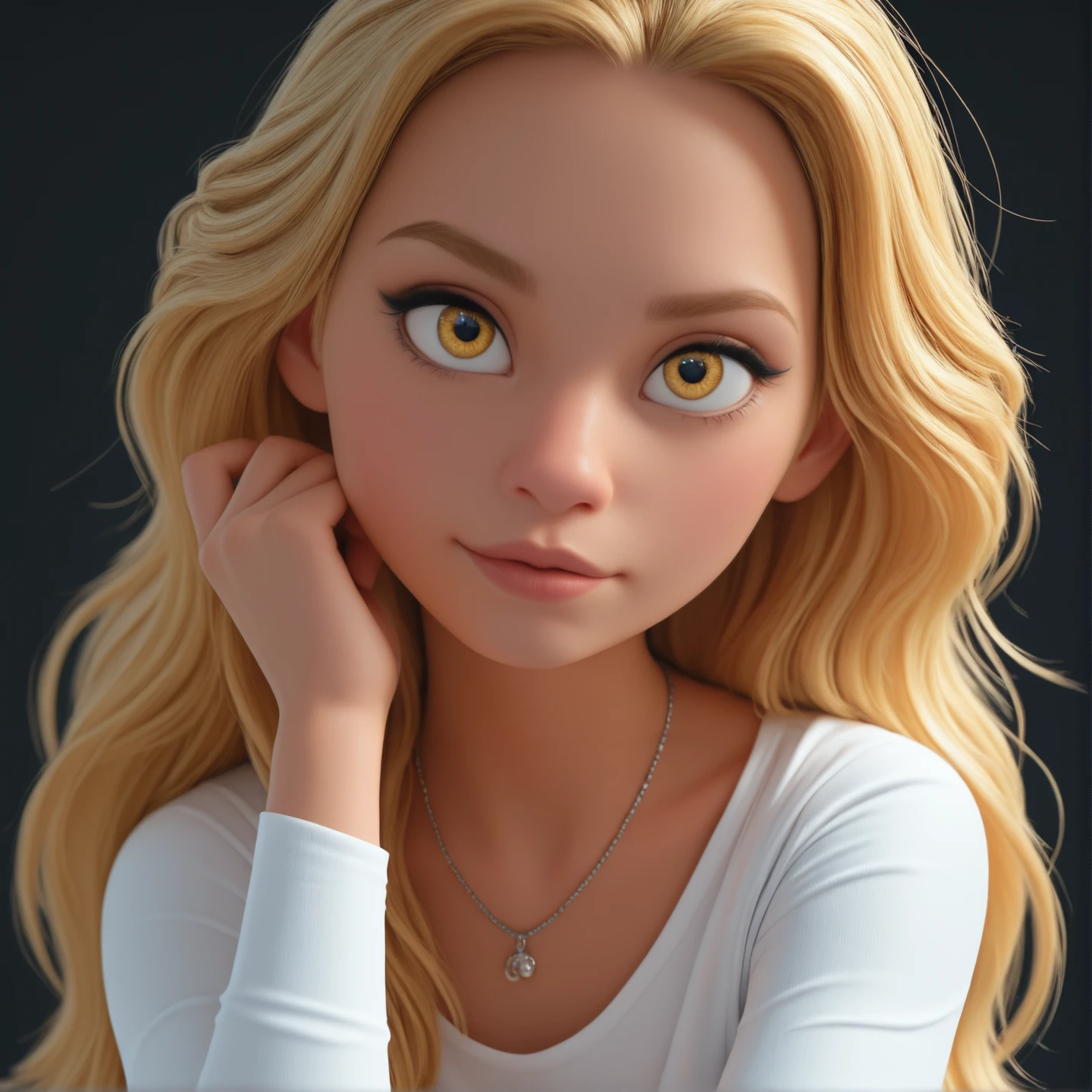 S4ndraCute, blonde hair, long hair, yellow eyes, big eyes