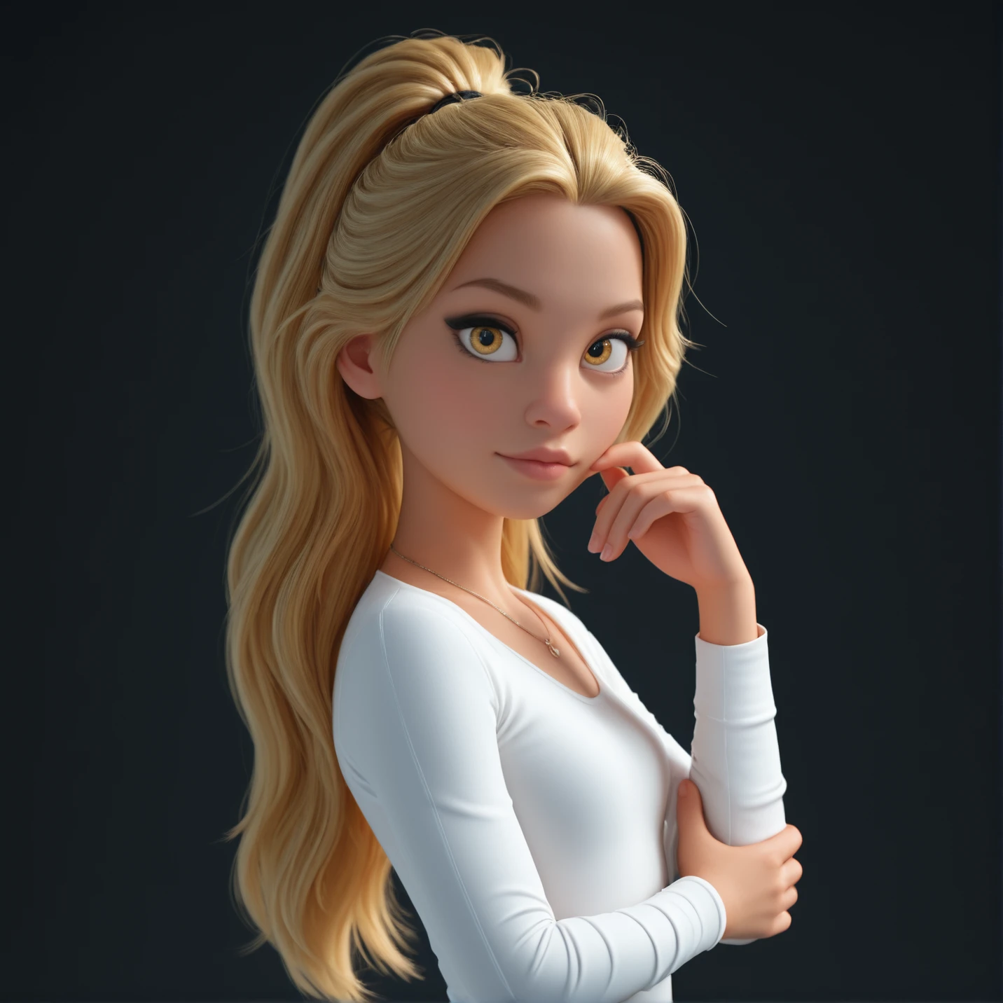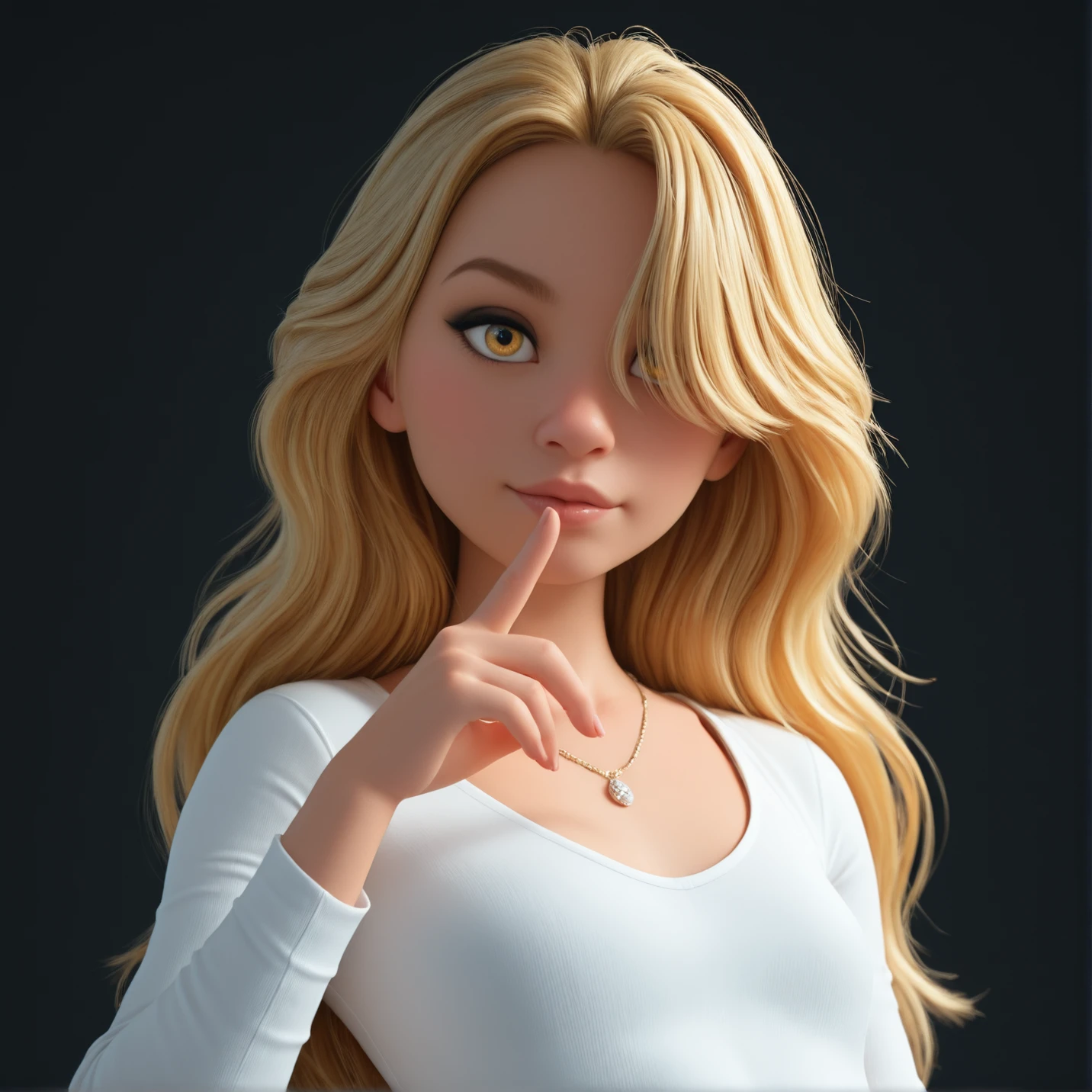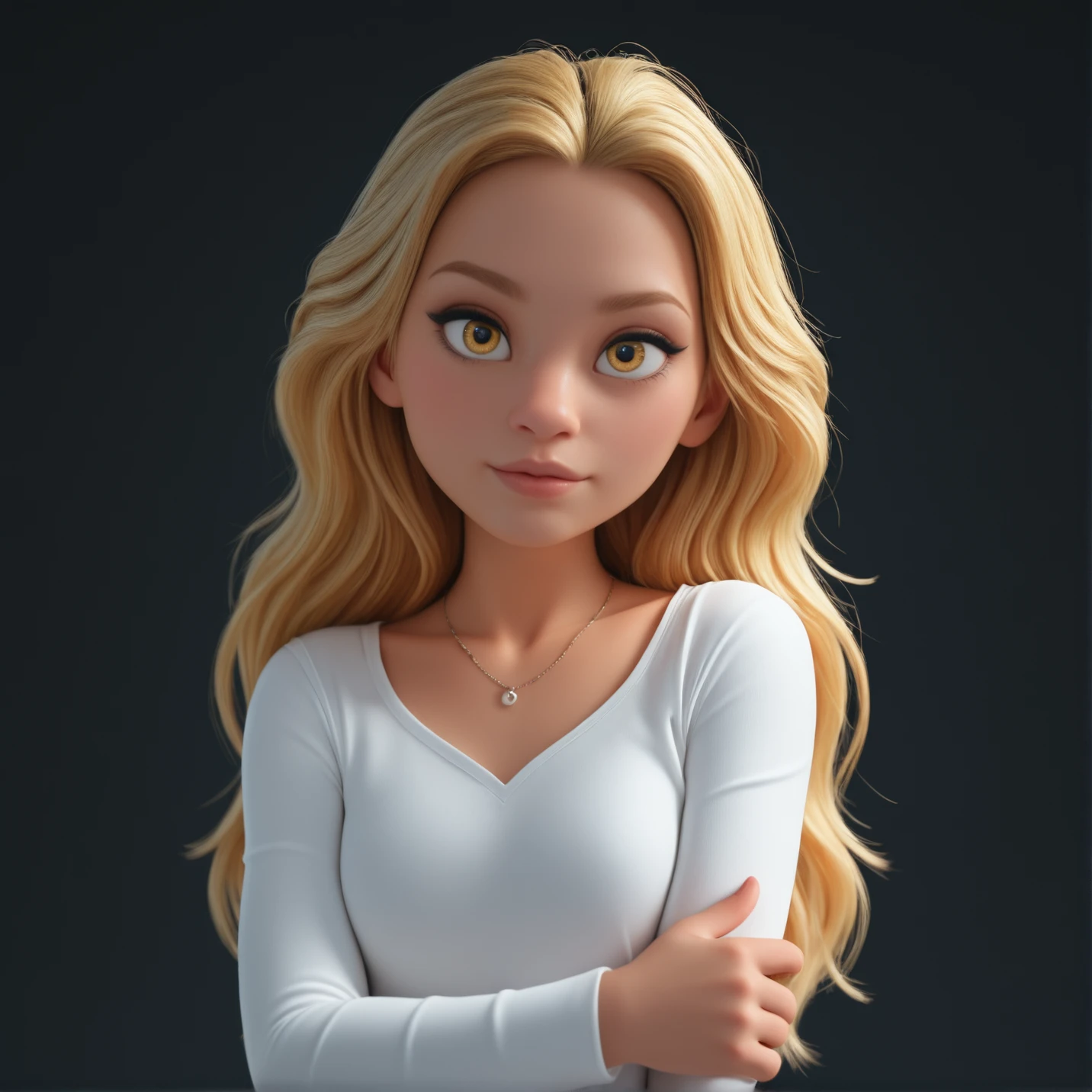 S4ndraCute, blonde hair, long hair, yellow eyes, big eyes