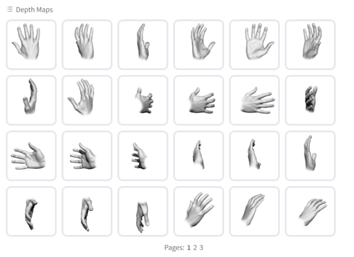 The images are originated from anatomy360.info Free Reference and all rights are reserved to their respective owners. Please support their site! What I did includes cutting each hand out and making the transparent background such that the images can be read by Depth Library and converted into depth maps by ControlNet. The editing was all done by hand and took quite a while to finish.