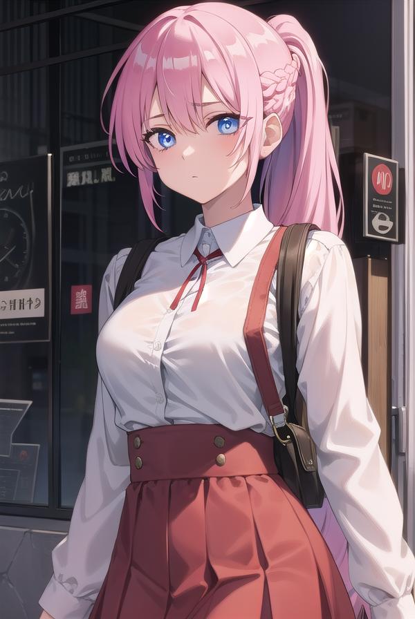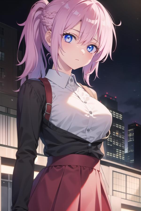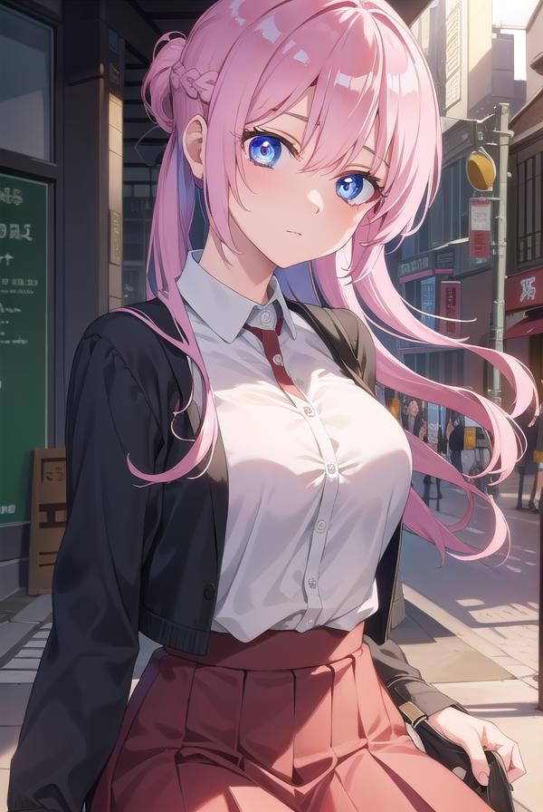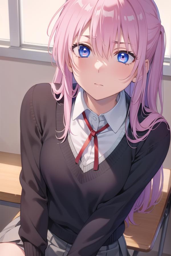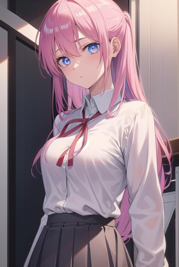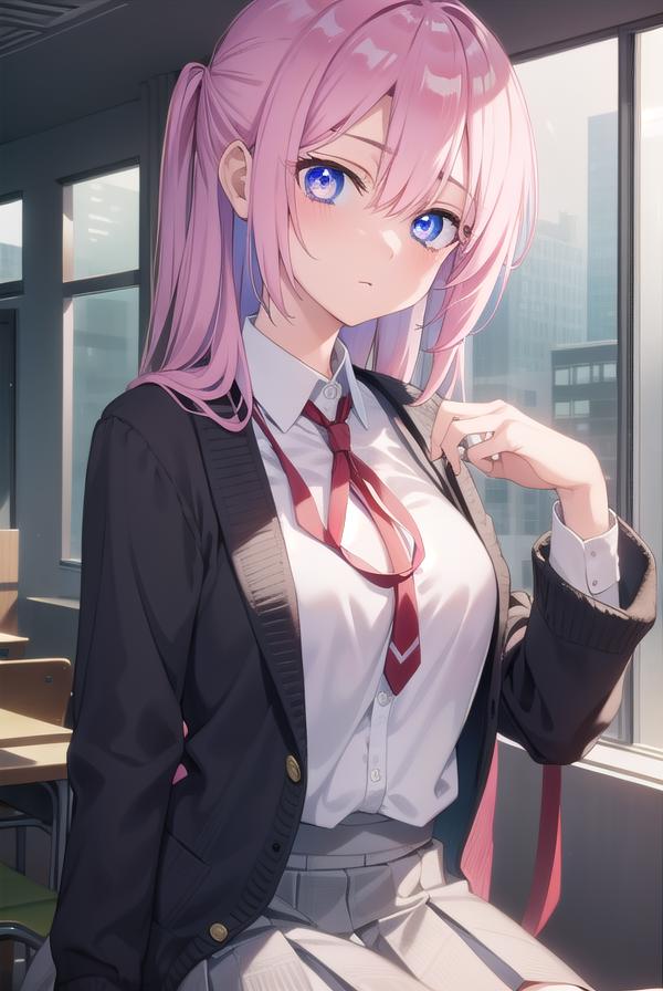 miyako shikimori, long hair, blue eyes, hair between eyes, pink hair,