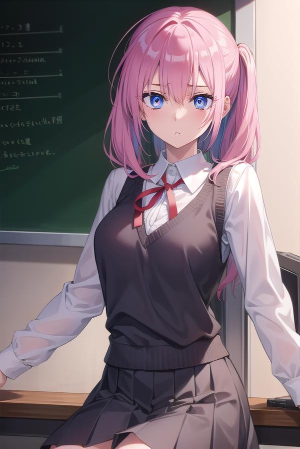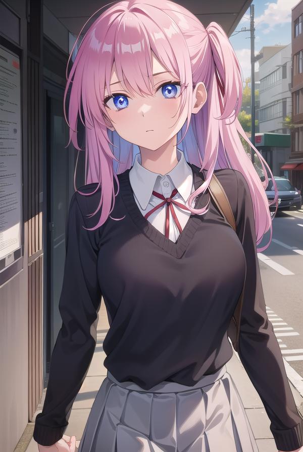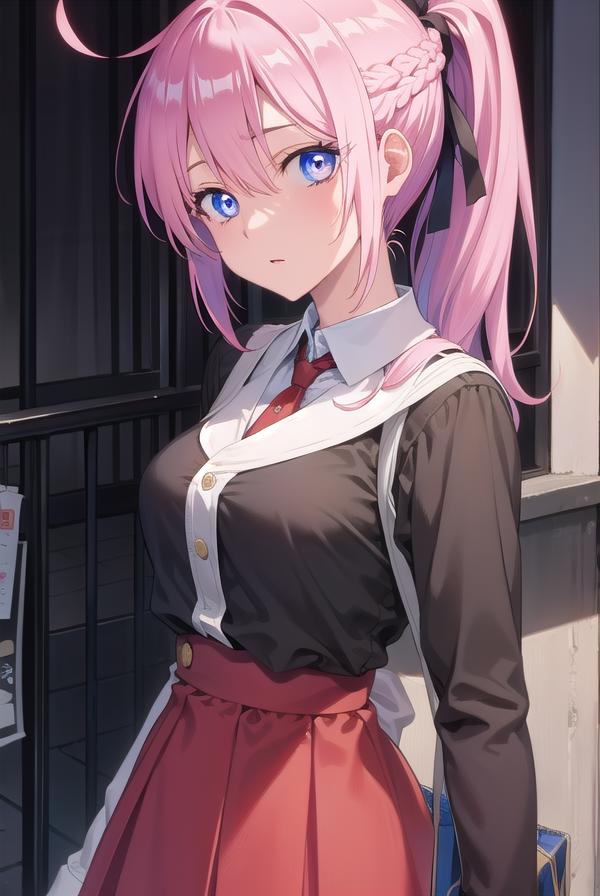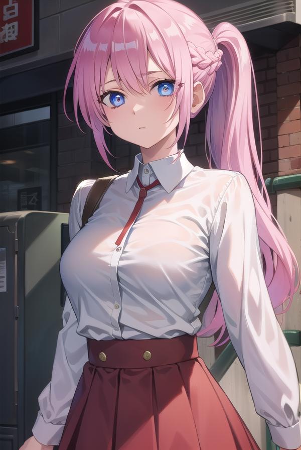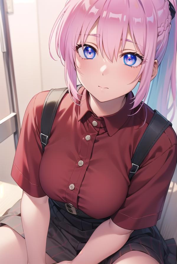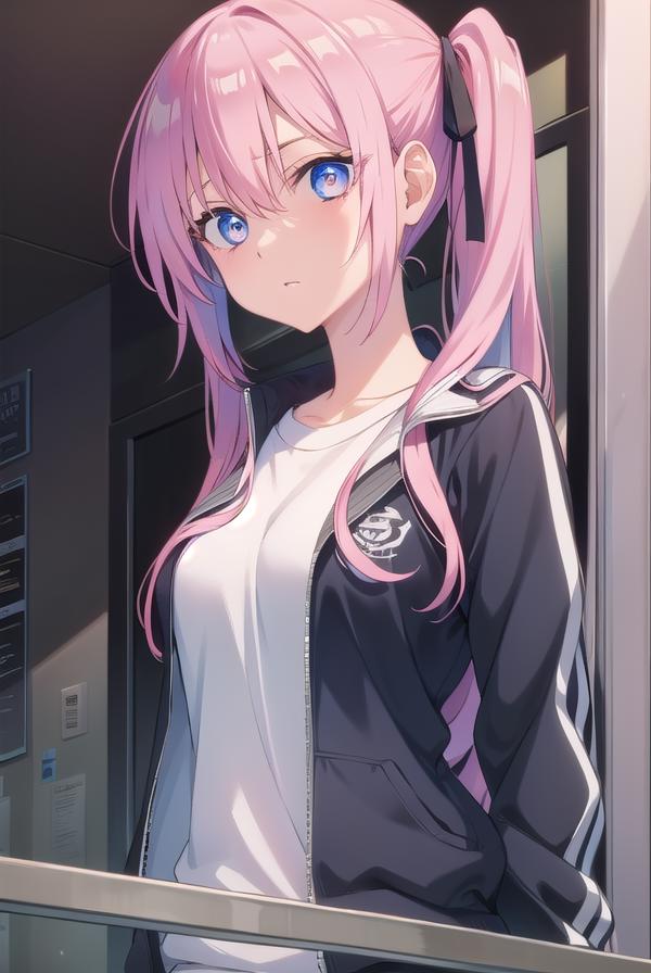 miyako shikimori, long hair, blue eyes, hair between eyes, pink hair,