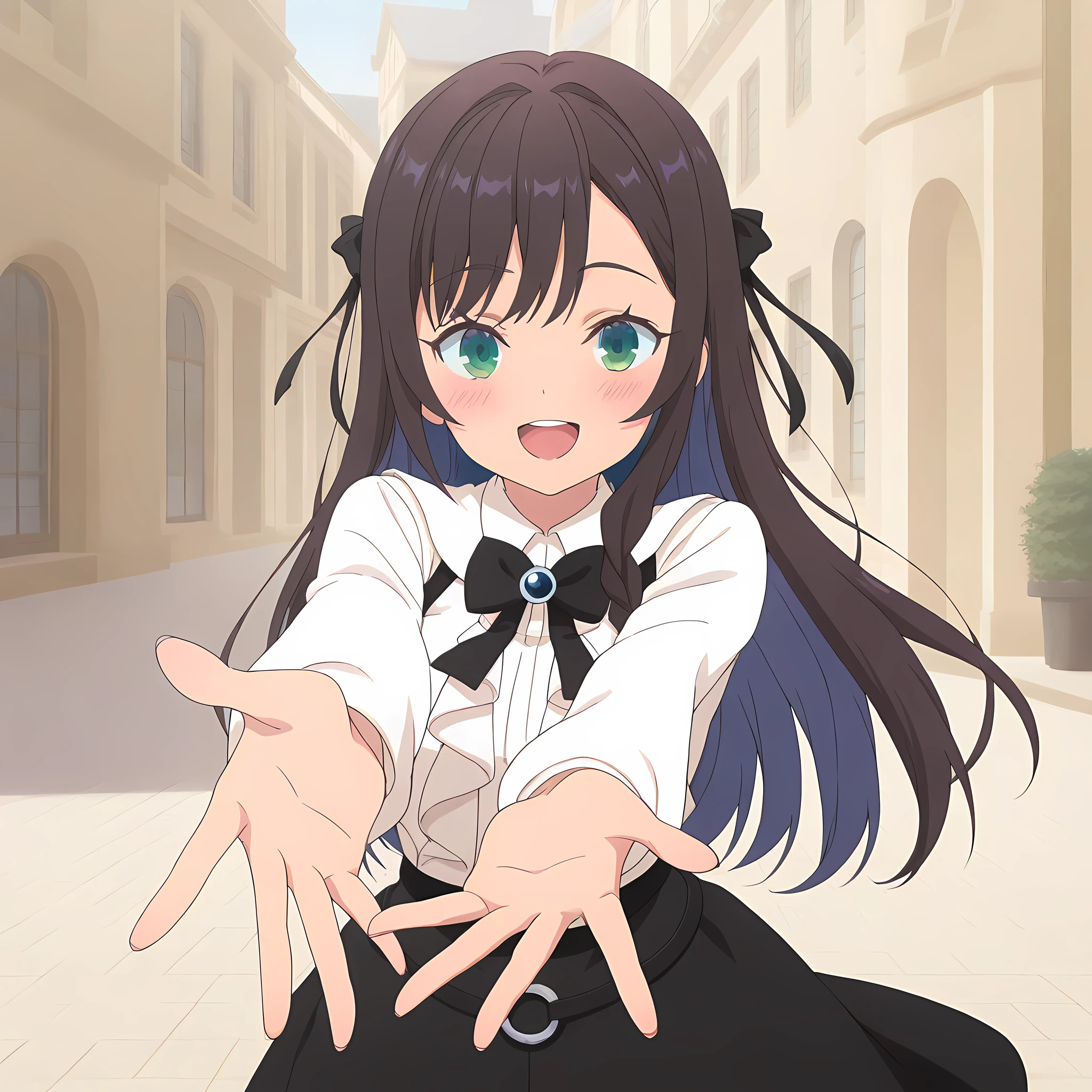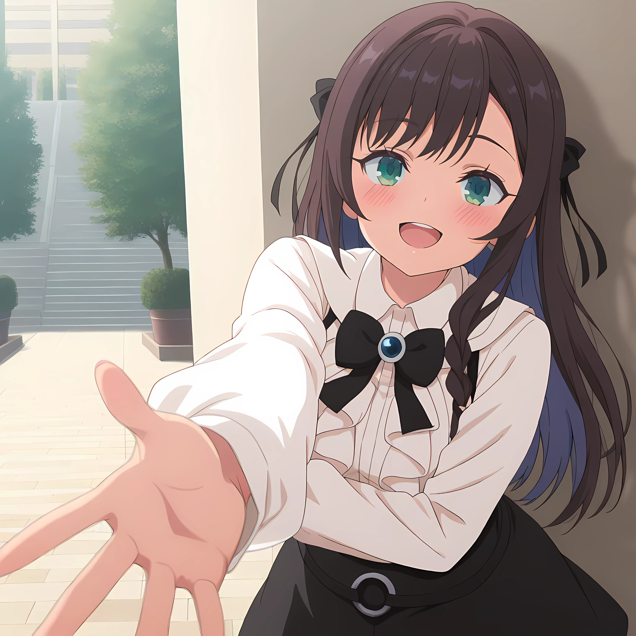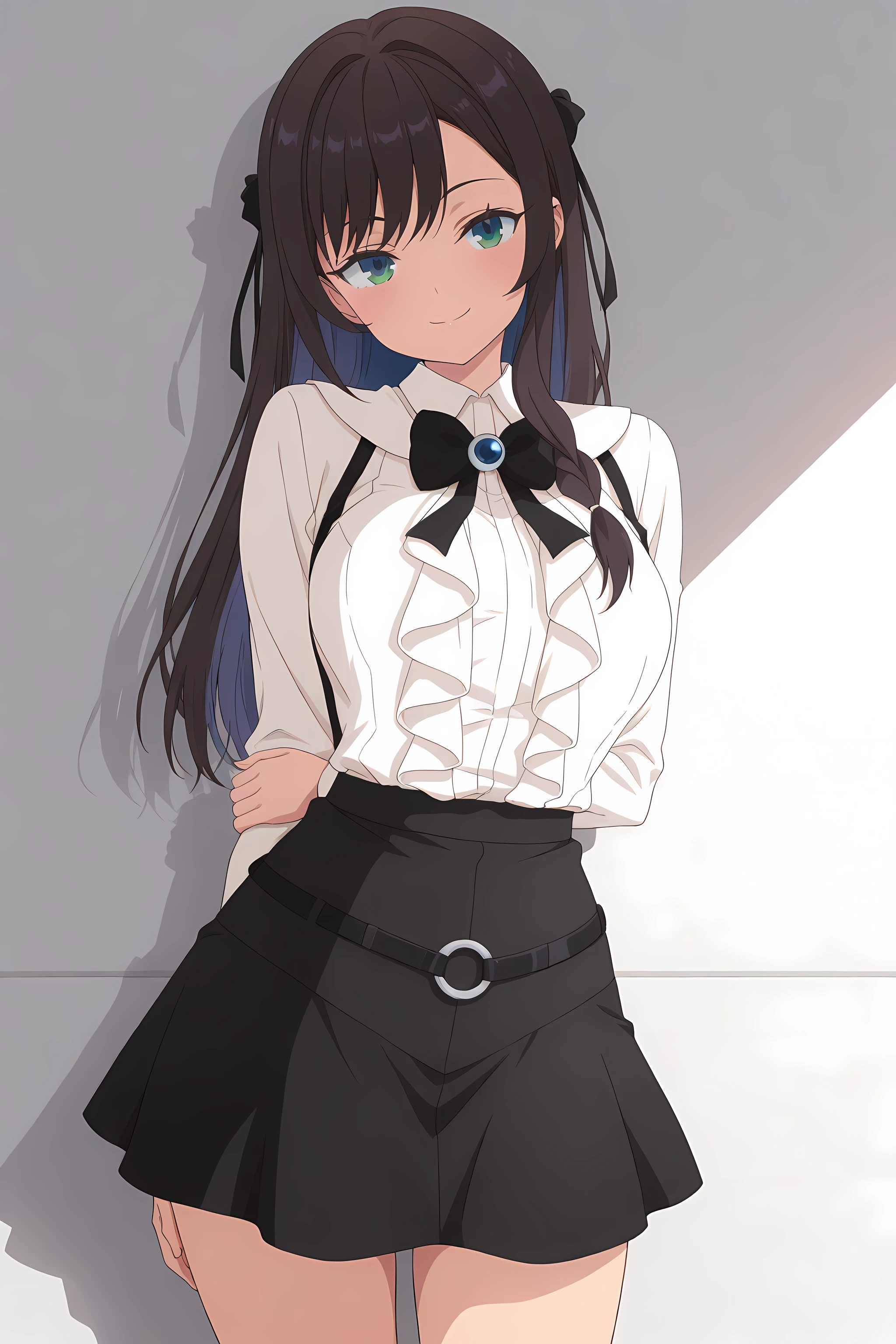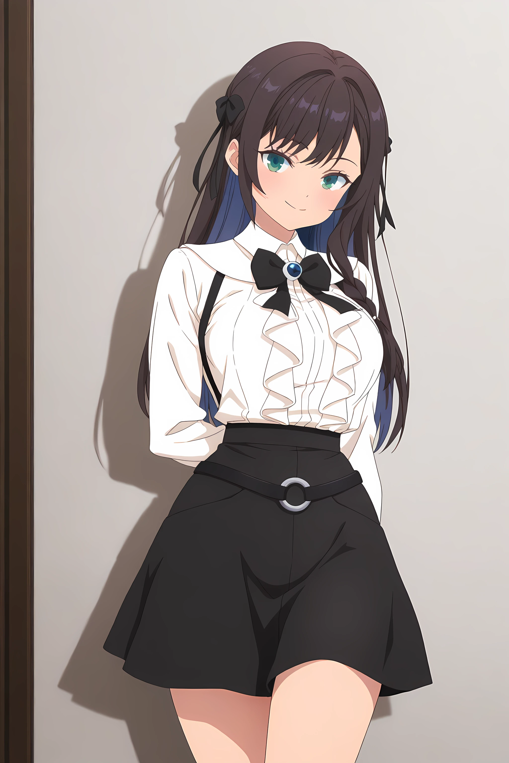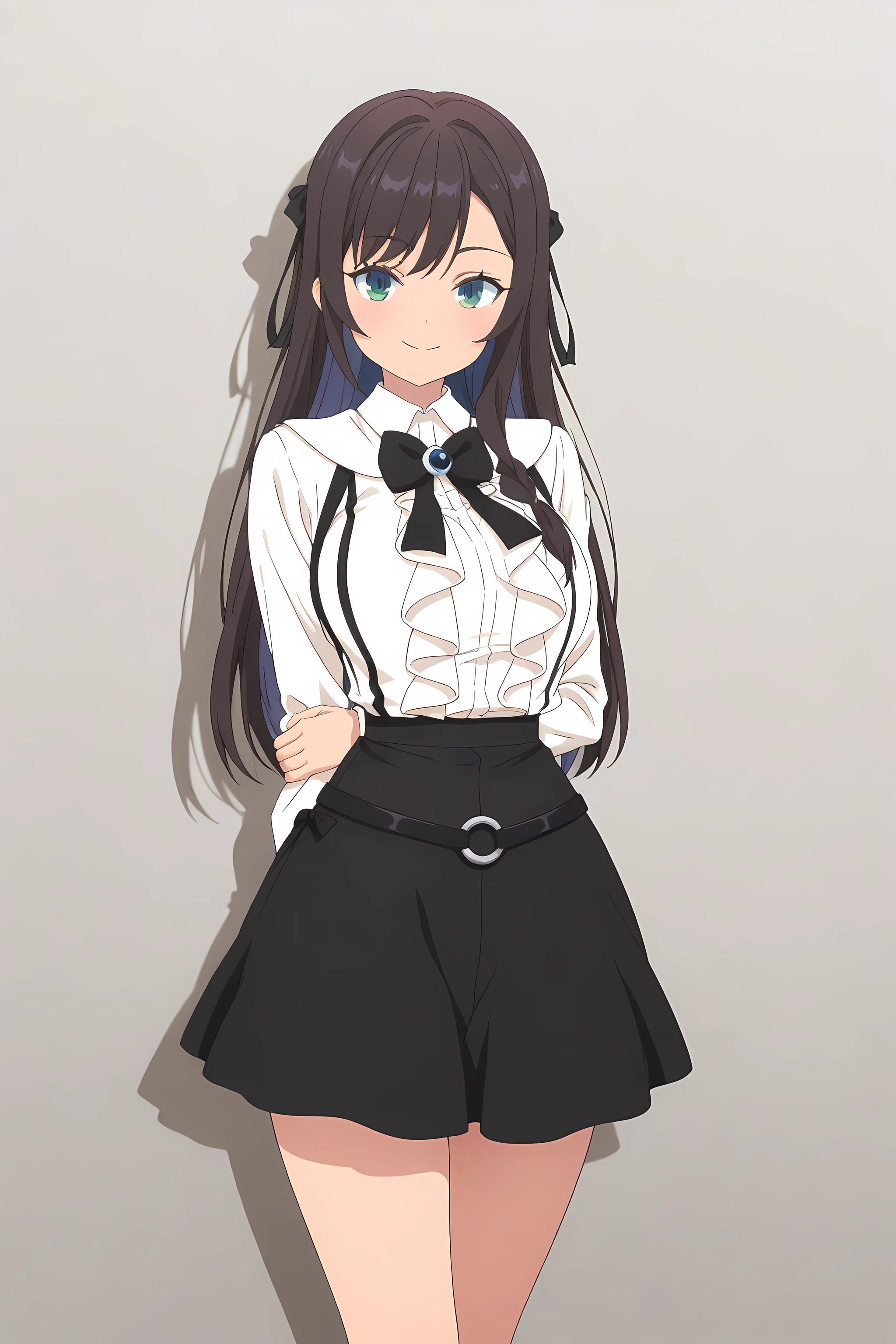 alina_clover, receptionistoutfit, 1girl, skirt, long hair, shirt, black skirt, shoes, white shirt, socks, long sleeves