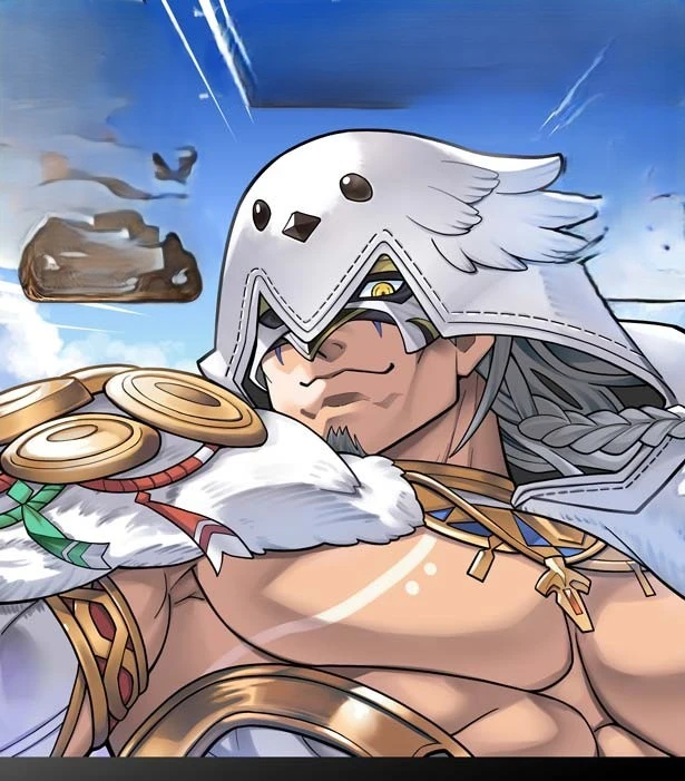 b3nnu, grey hair, long hair, braids, yellow eyes, facial hair, goatee, mask,