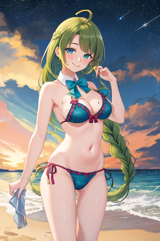 The trigger word is yuugumo_kantaicollection, and the recommended tags are best quality, masterpiece, highres, solo, {yuugumo_kantaicollection:1.15}, green_hair, long_hair, mole, mole_under_mouth, blue_eyes, ahoge, braid, single_braid, very_long_hair, blush, smile, bow, bowtie, breasts.