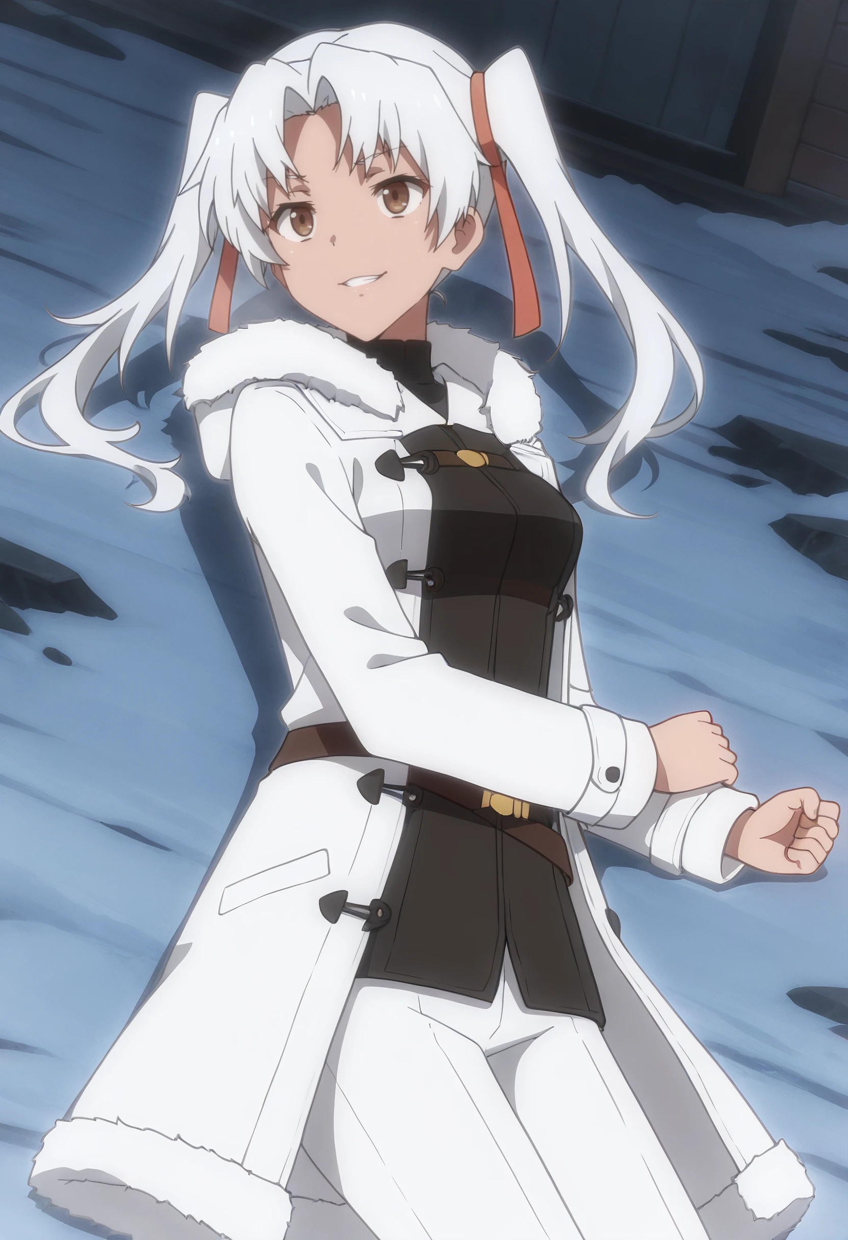 TNMYSana, twintails, white hair, brown eyes, long hair, parted bangs,