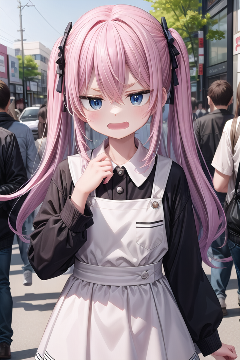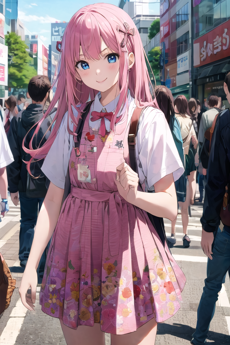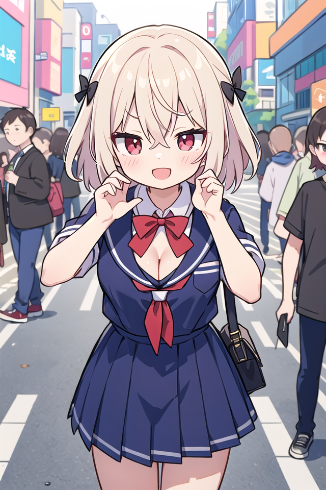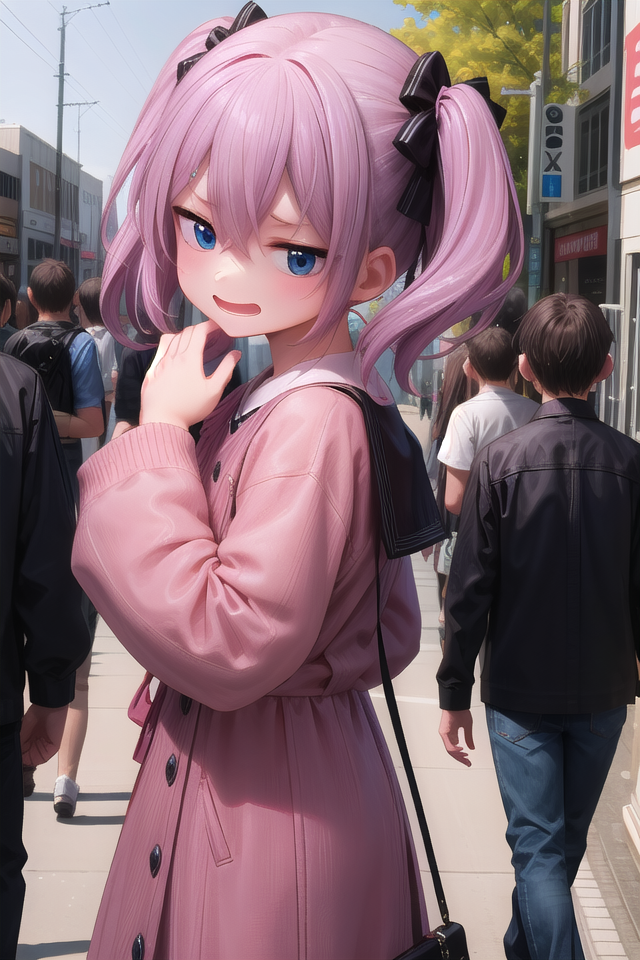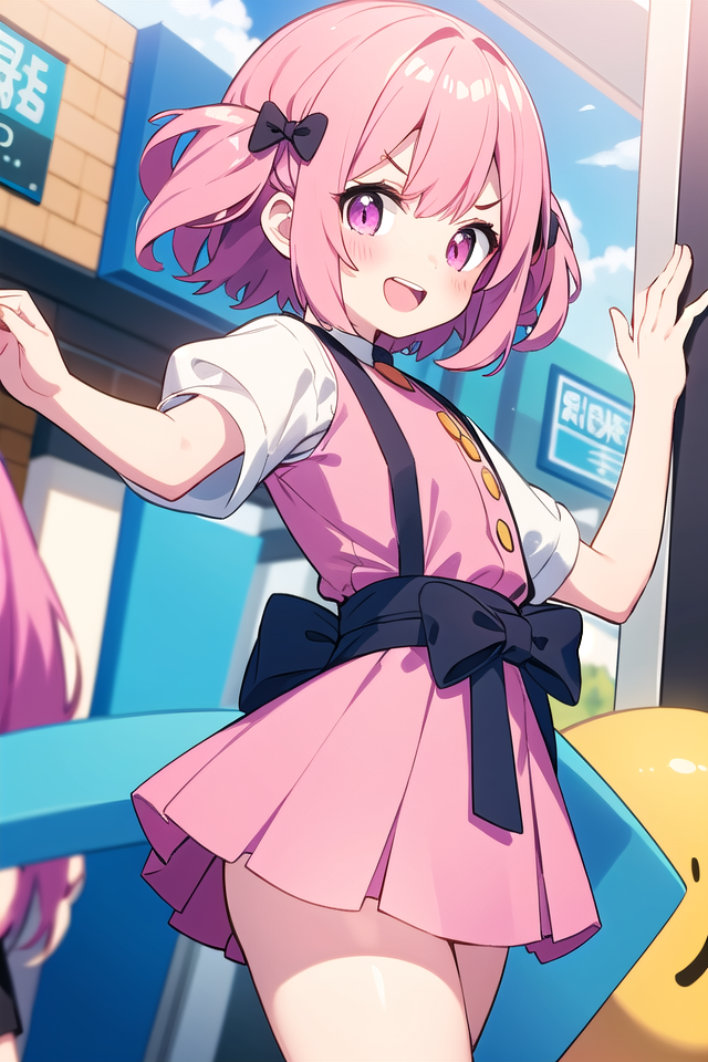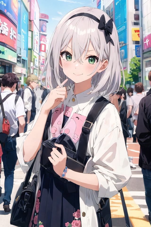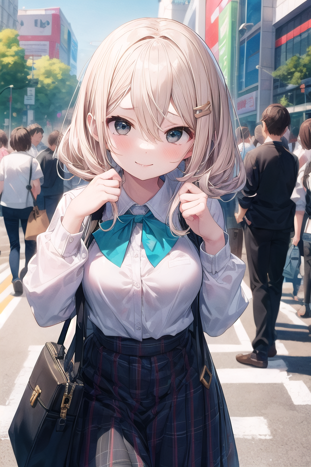 たまにヘアピンがたくさんくっついた状態になってしまうことがあります。その場合、ネガティブプロンプトにhair clipを記述するか、NegPiP拡張機能を入れてポジティブ側に(hair clip:-1)と記述し、打ち消してください。