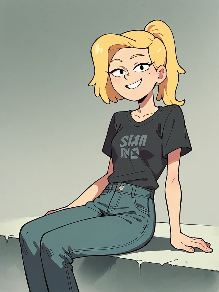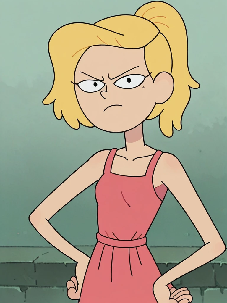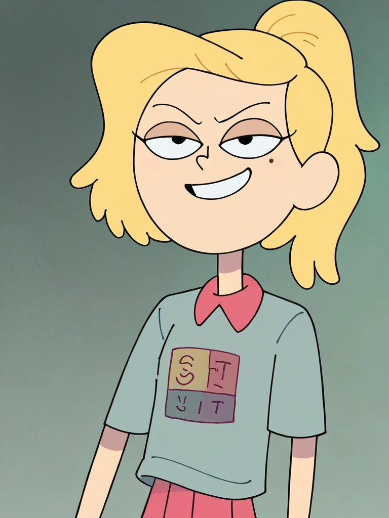 Keywords: sasha waybright, blonde hair, ponytail, black eyes, mole under eye,