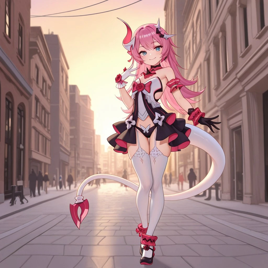 roza_hi, horn ribbon, sleeveless dress, arm scrunchie, mismatched gloves, black panties, garter straps, white thighhighs, shoes