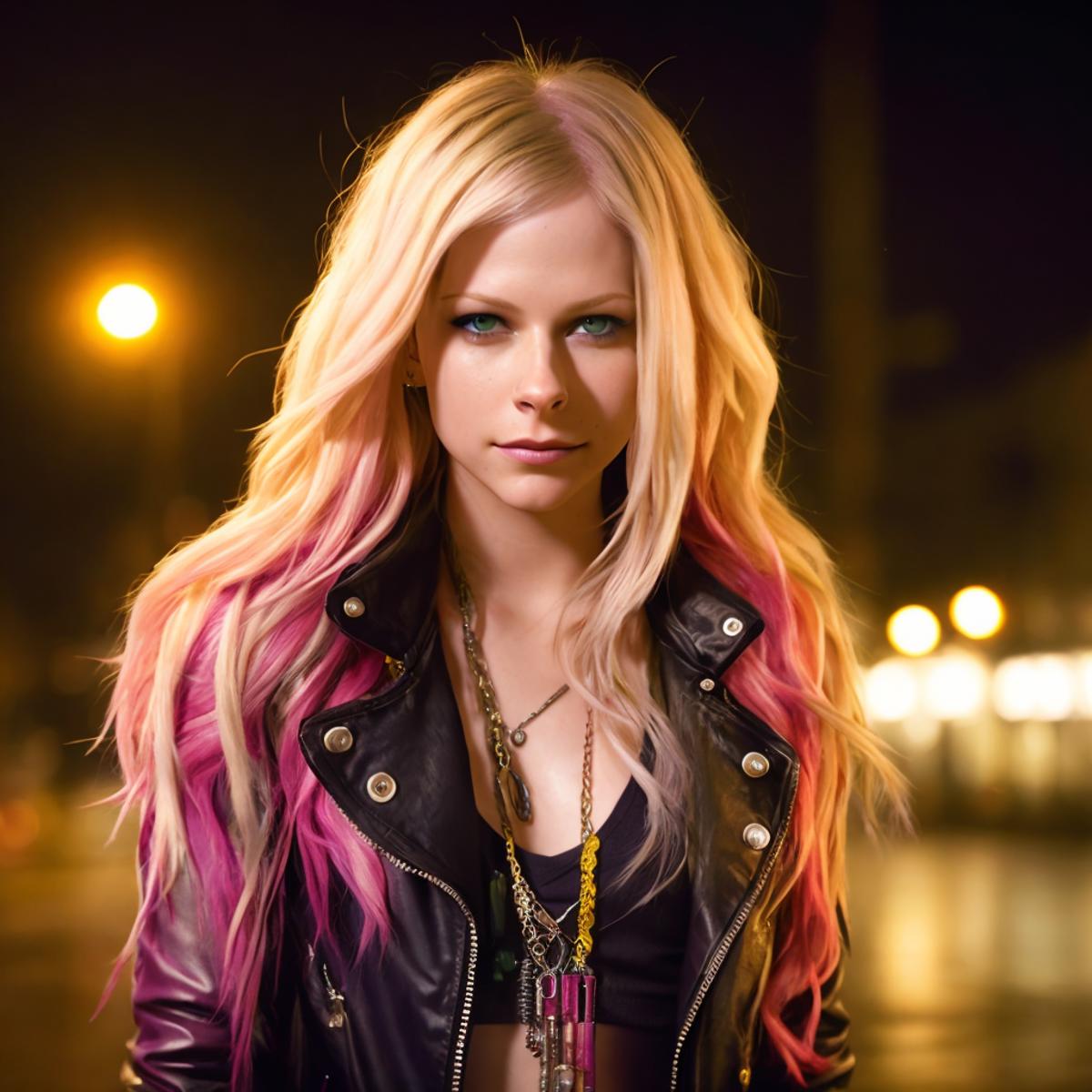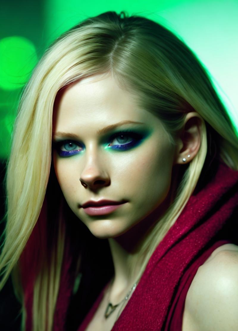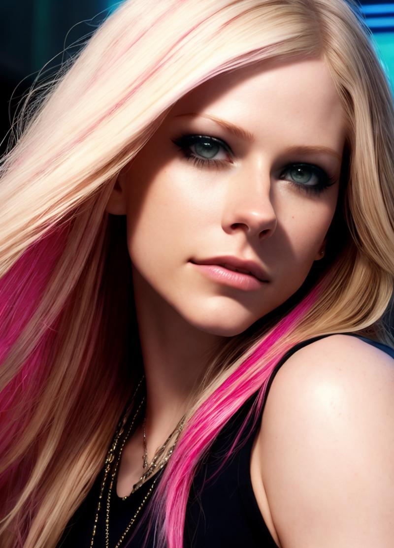 Textual Inversion embedding trained on 28 images of Canadian singer Avril Lavigne, from various professional photoshoots and stage appearances.