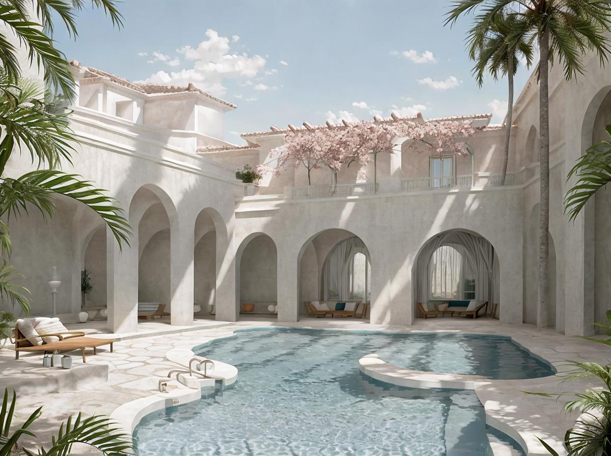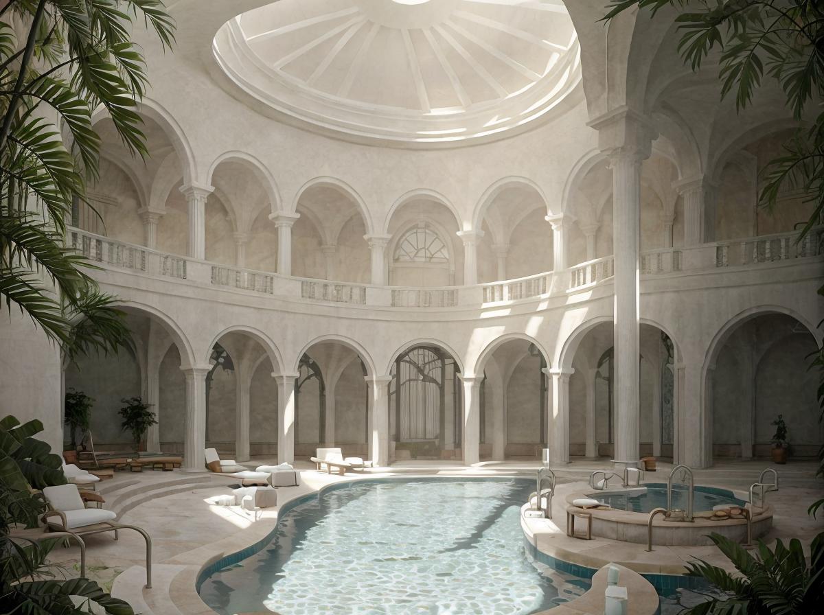 Hotel-y European environments with nice vistas, plants and a surreal feel to it all.